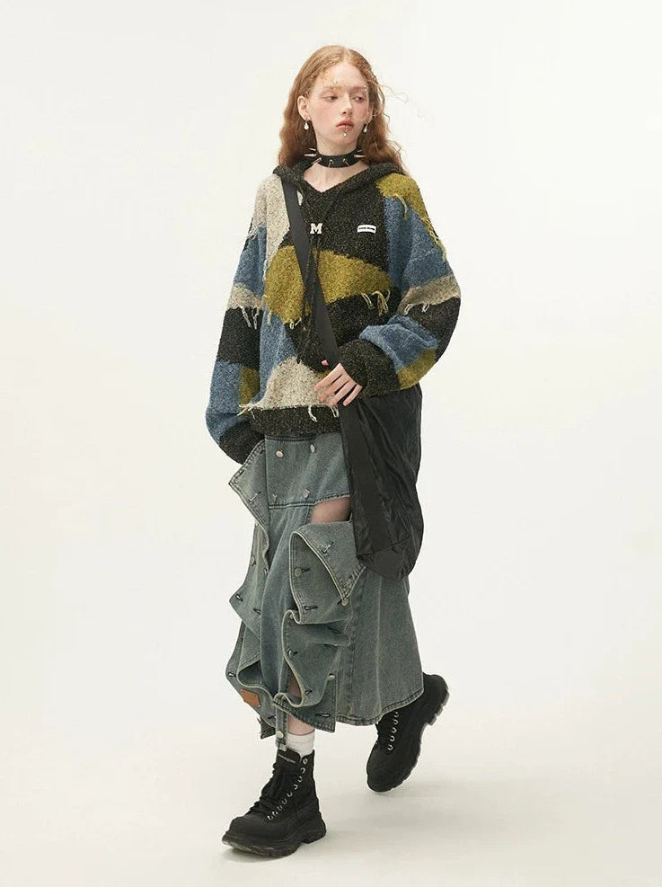 フード付きカラーレトロブロックニットで、スタイリッシュで快適な着心地をキープ。どんなシーンにもぴったり。個性的なデザインが装いにチャーミングなアクセントを添えます。このキュートなニットで、暖かくファッショナブルな着こなしを叶えましょう!