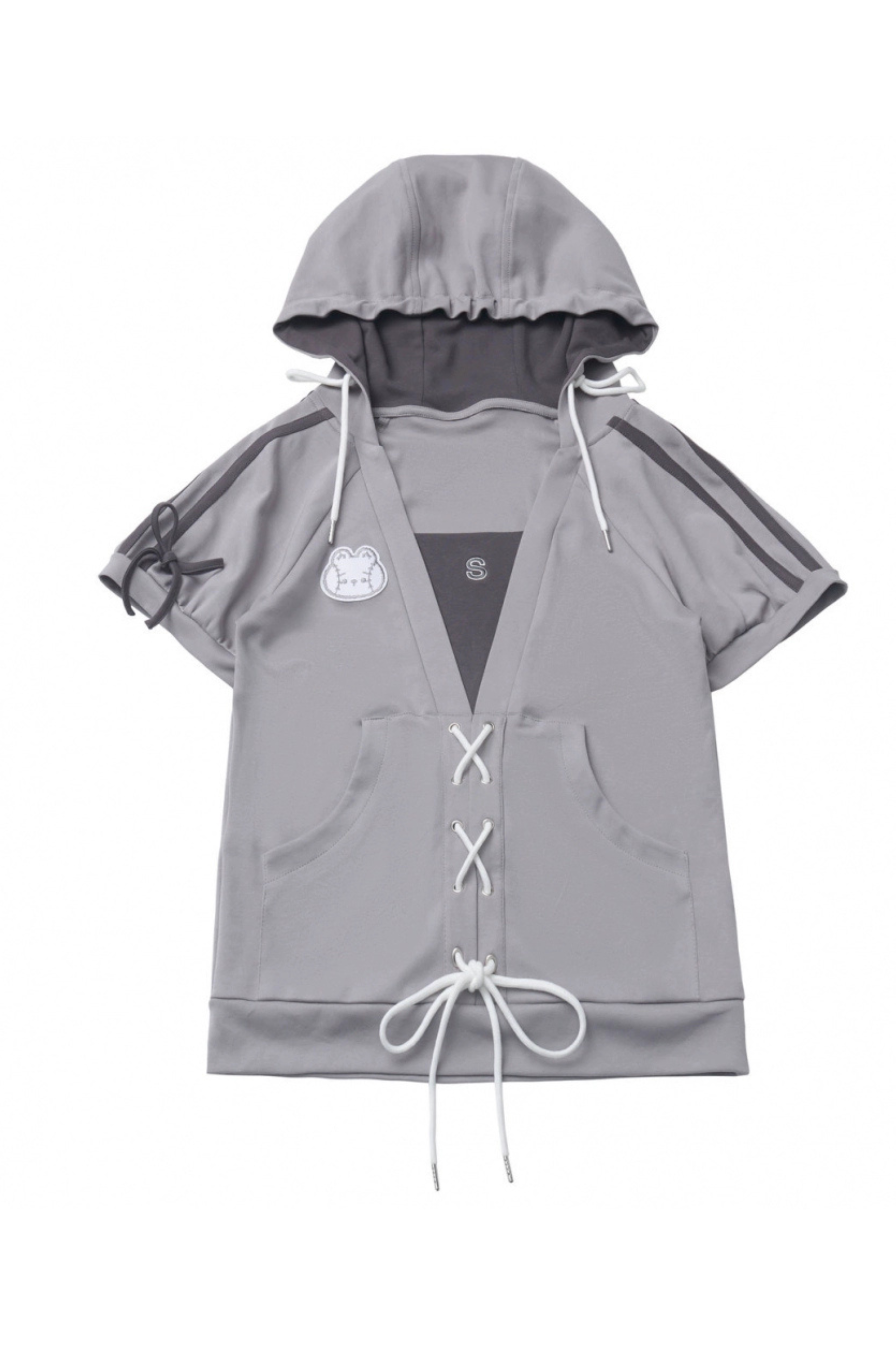 フード付きスカート レースアップトップス + ゆったりTシャツバルーン