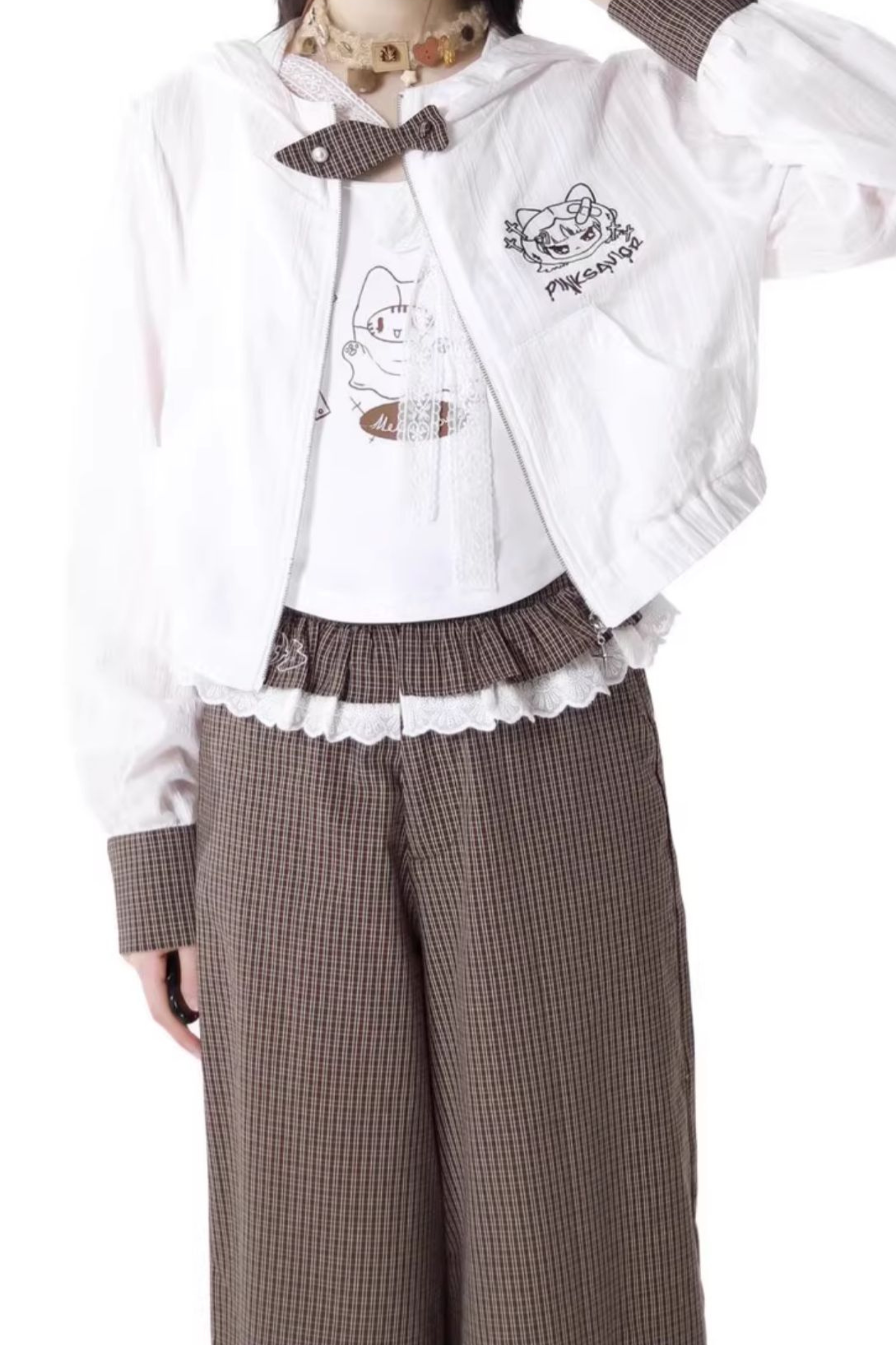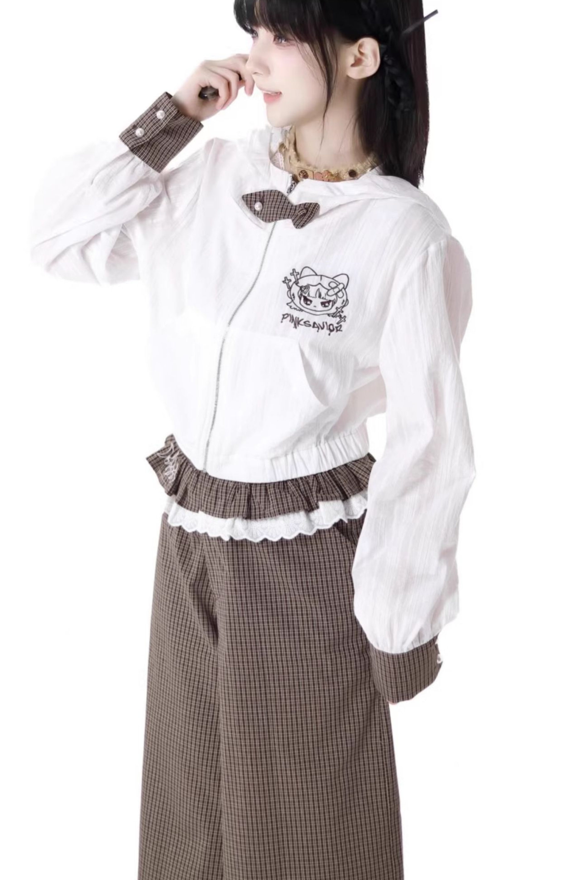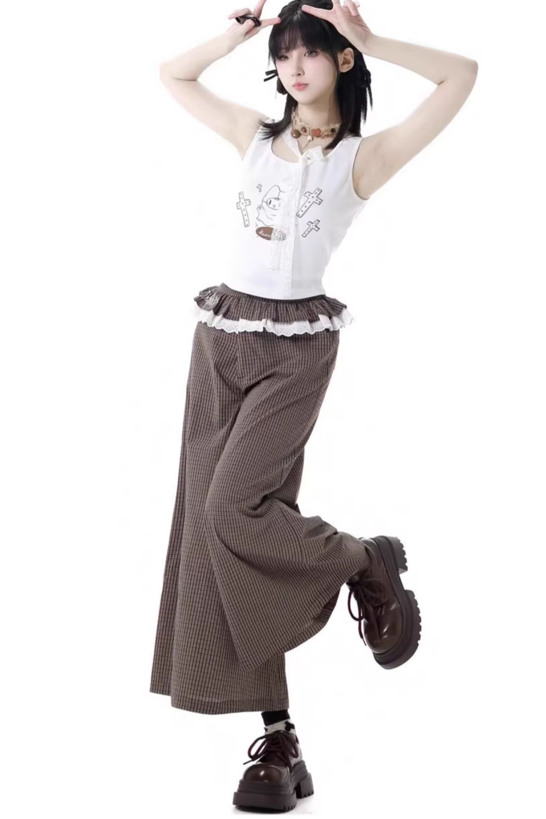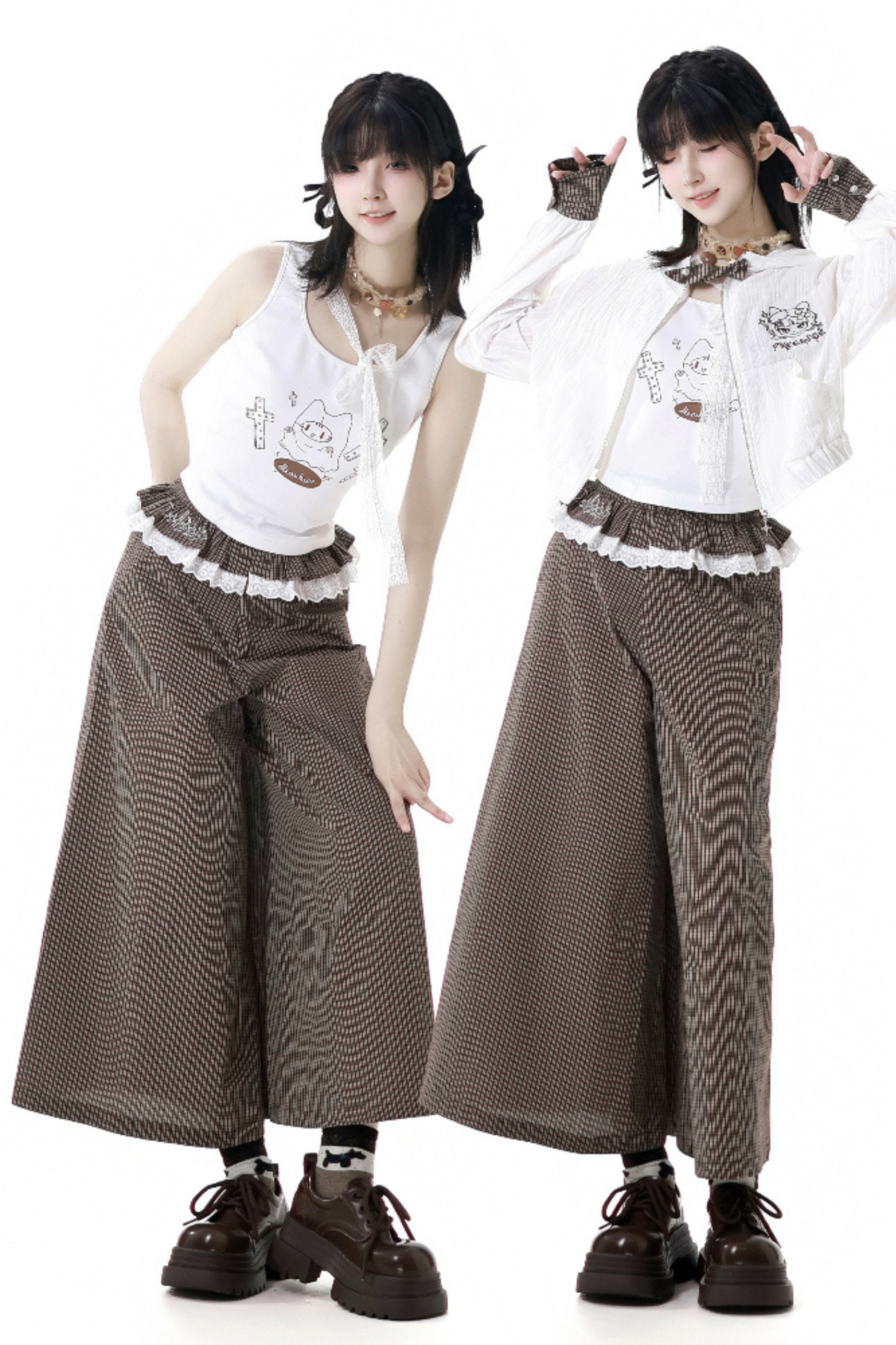 ❤パーカー + ノースリーブトップス + ワイドパンツ❤