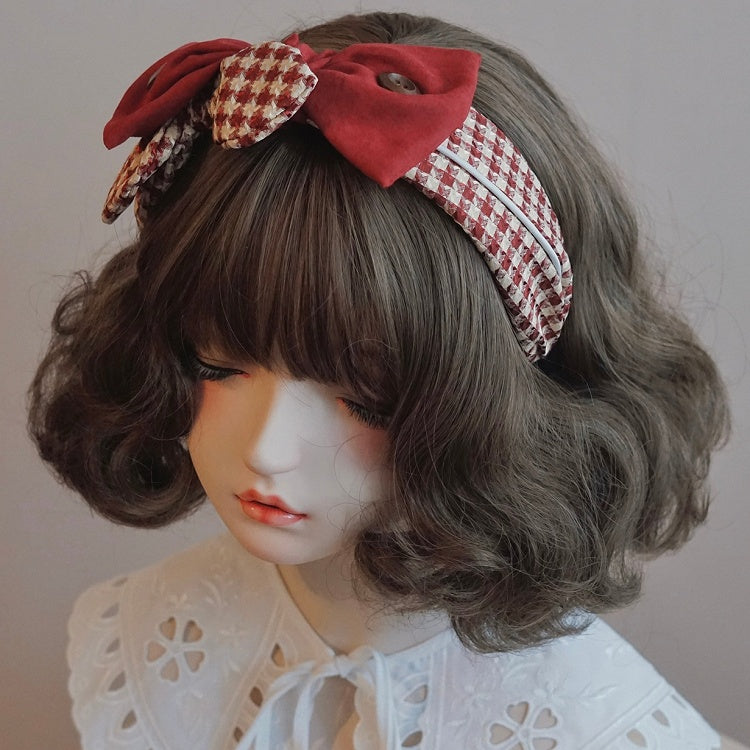 千鳥格子の赤い蝶結びのKCパターン