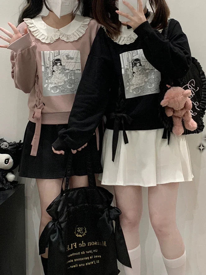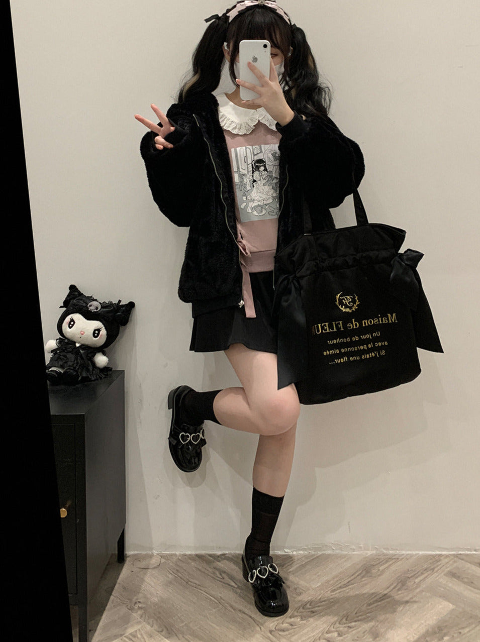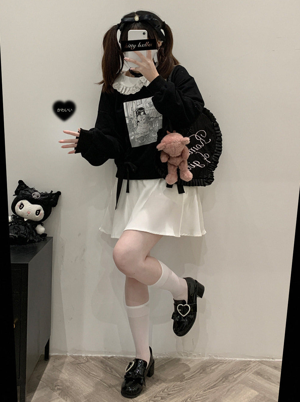 黒と白のオールドスクールロリータファッションドレス蝶結びロリータJSKセット