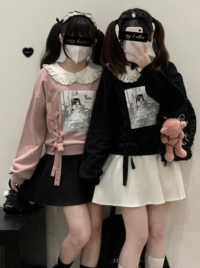 ピンクと白のオールドスクールロリータファッションドレス、蝶結びディテール、ロリータJSKセット