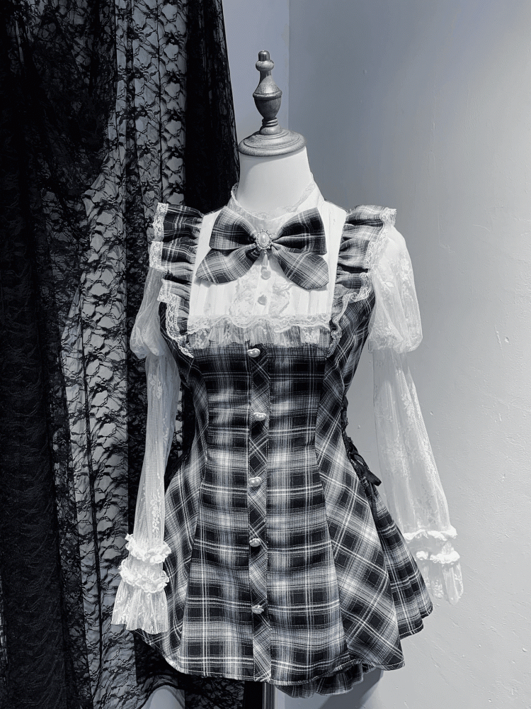 黒と白のオールドスクールロリータファッションドレス蝶結びロリータJSKセット