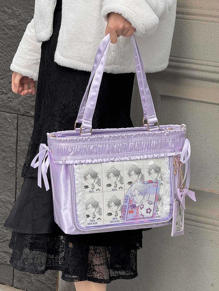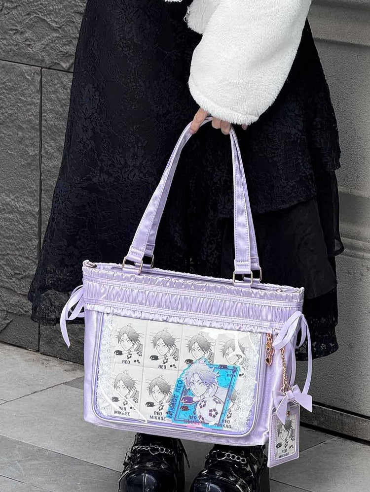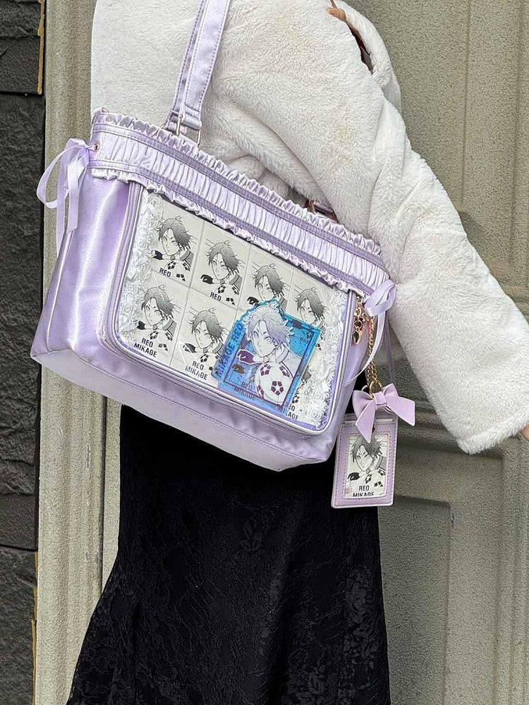 イタバッグ フリルリボンボウ 大容量トートバッグ パープルトリム