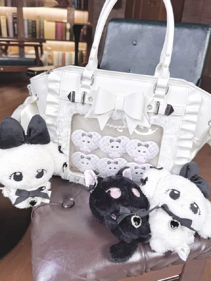 Jirai Kei White Lace Trim Ita Tote – Large Capacity, Top Handle