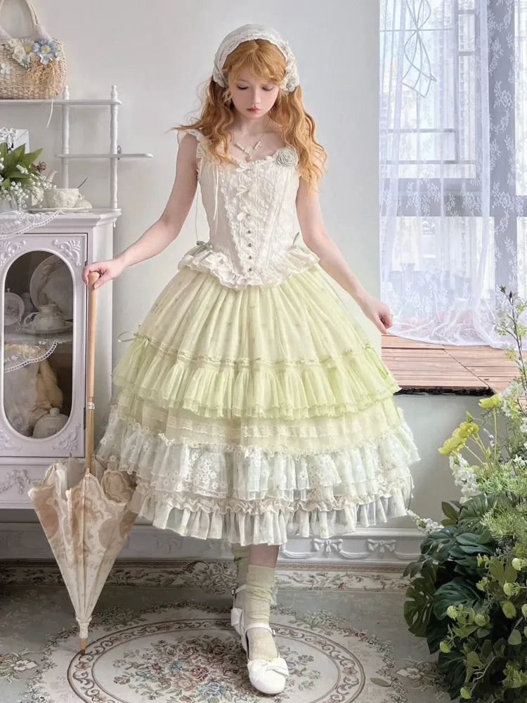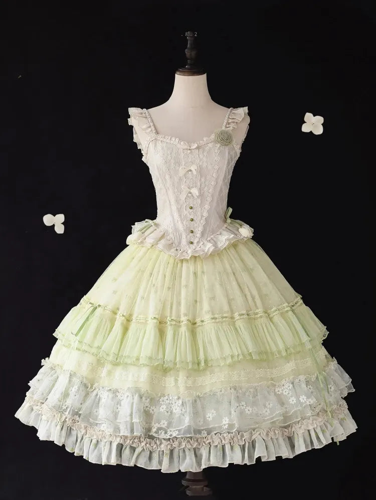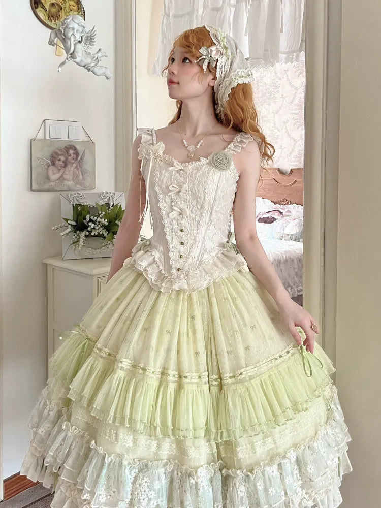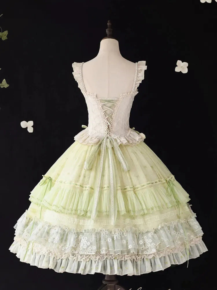 青と白のオールドスクールロリータファッションドレス 蝶結びディテール JSK セット