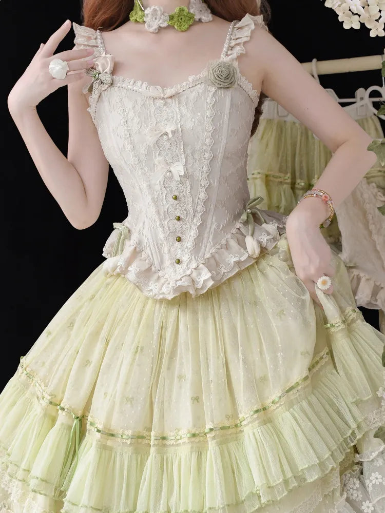 アイボリービーズディテールファブリックハートコルセットジャカードボーントップ