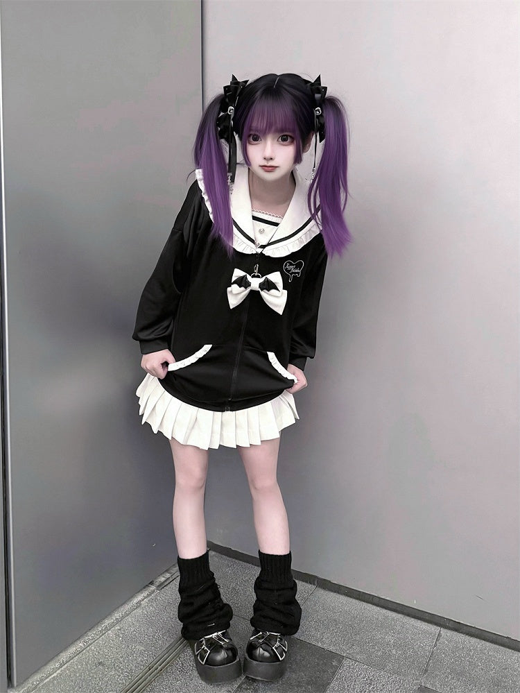 Jirai Kei Sailor Collar Academic Jacket - Black & White Sweet Edgy Look