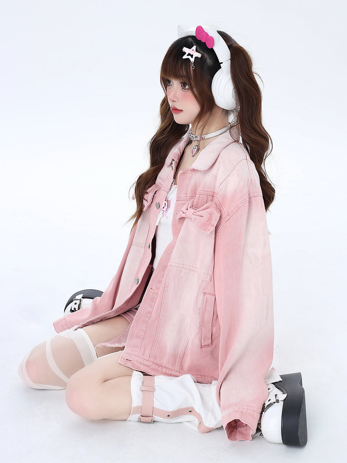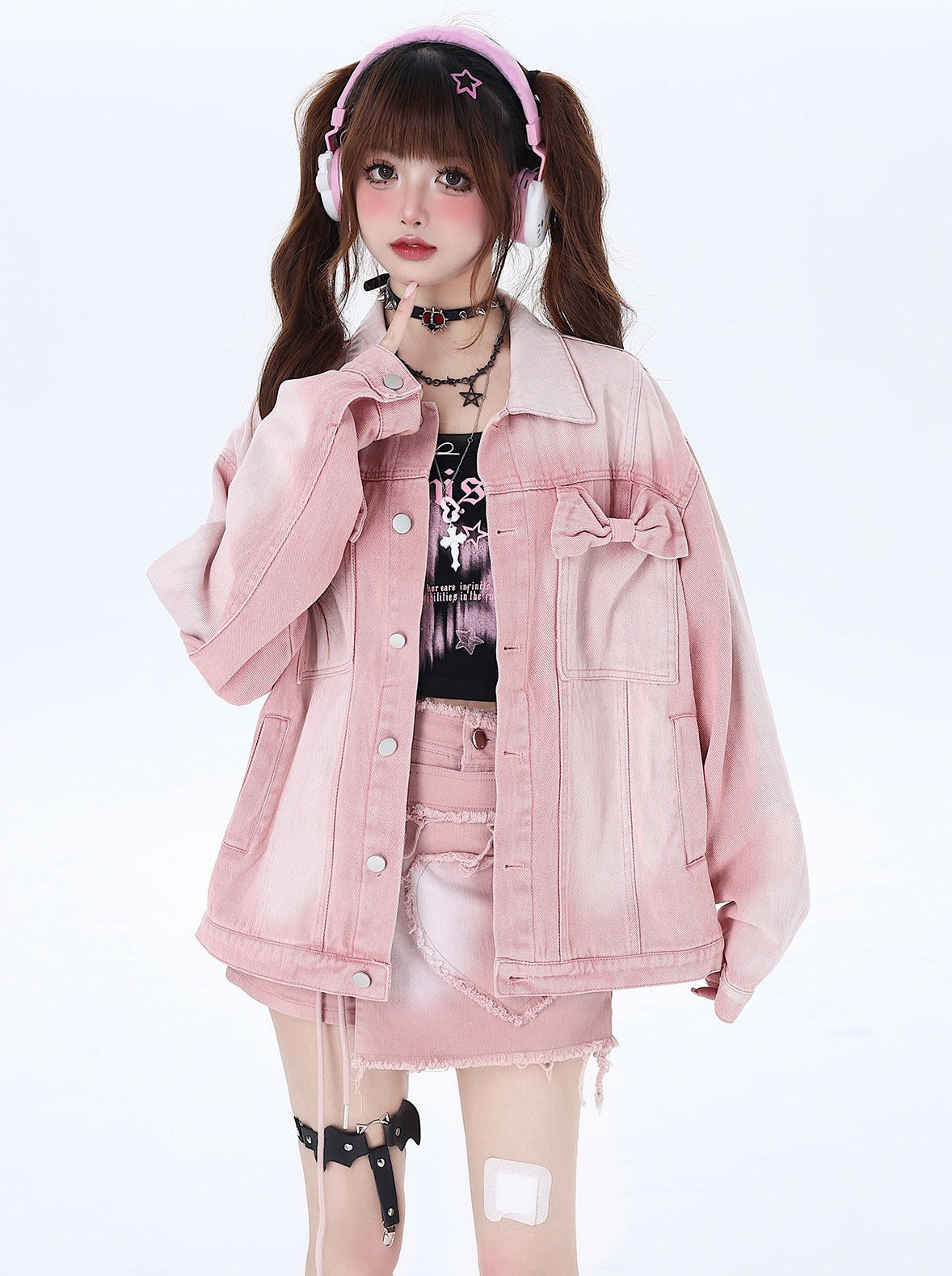 可愛らしいOshピンクのデニムスイートリボンジャケットで、スタイリッシュに、そして快適に過ごしましょう!チャーミングなリボンデザインが特徴のこのジャケットは、キュートな見た目と暖かさを両立。快適さのためにスタイルを犠牲にする必要はありません。このジャケットがあなたをしっかりサポートします。