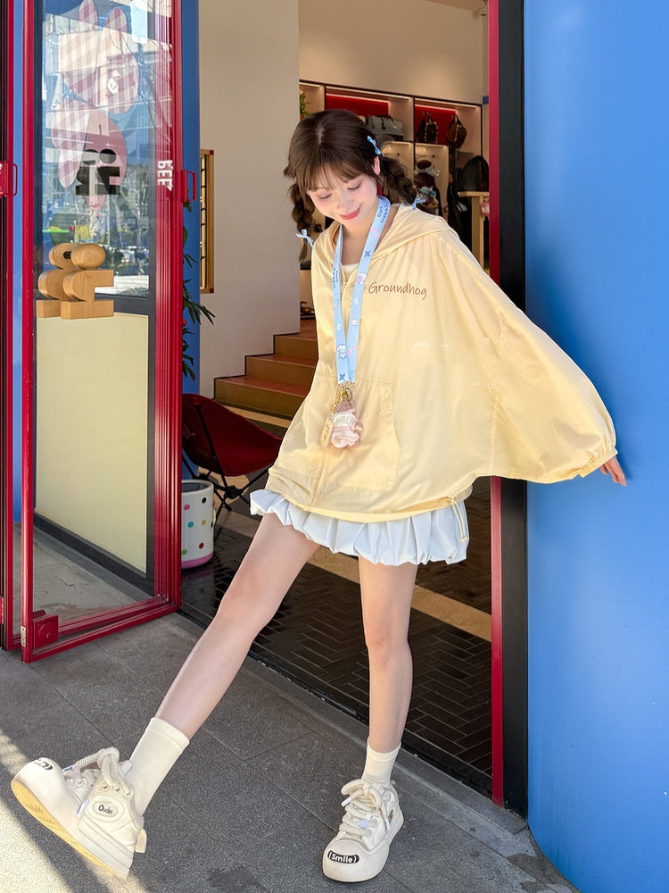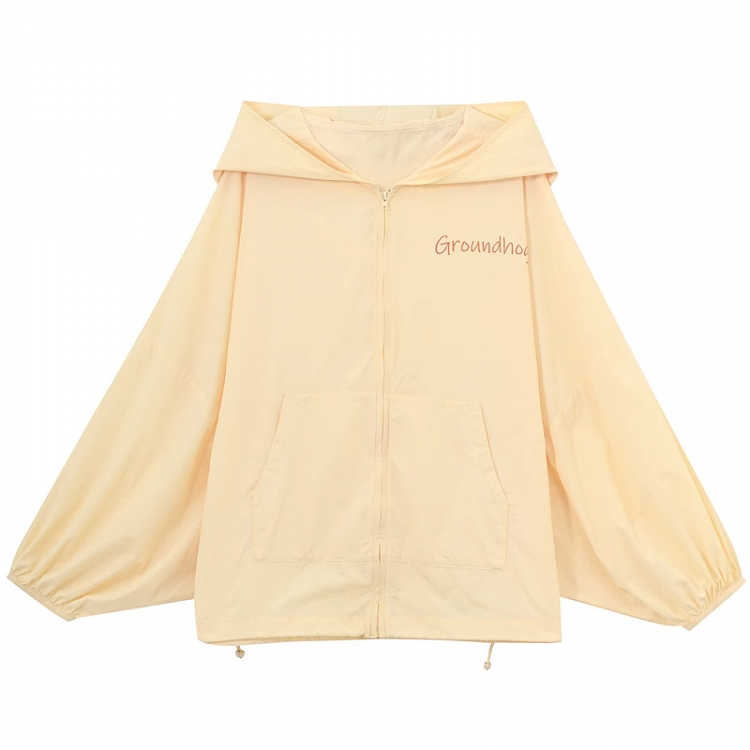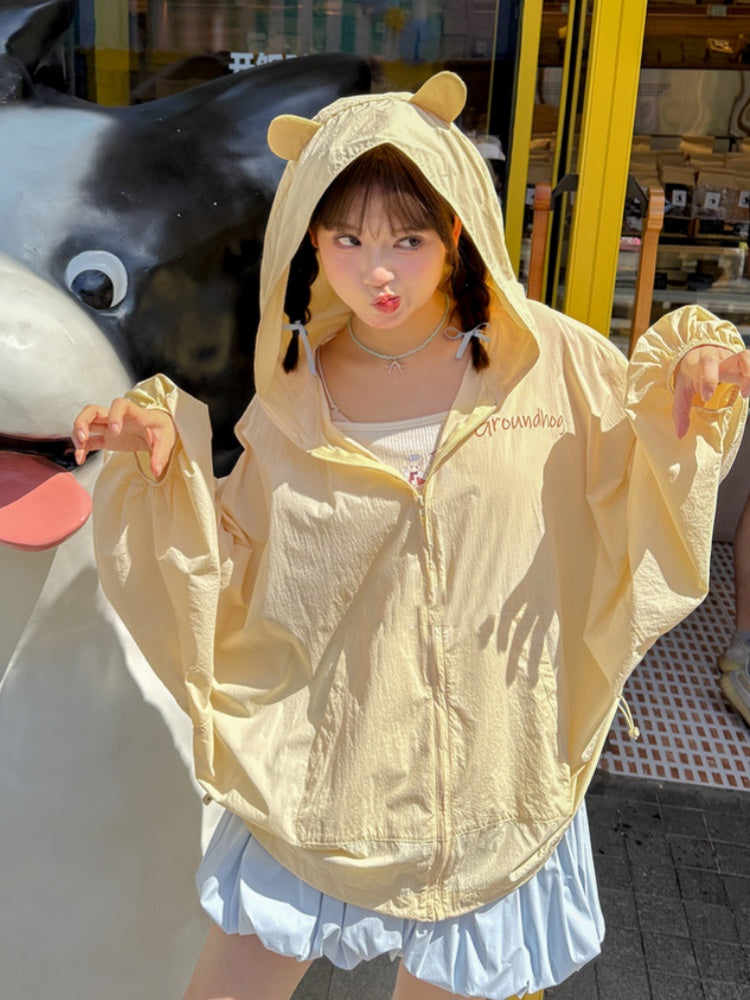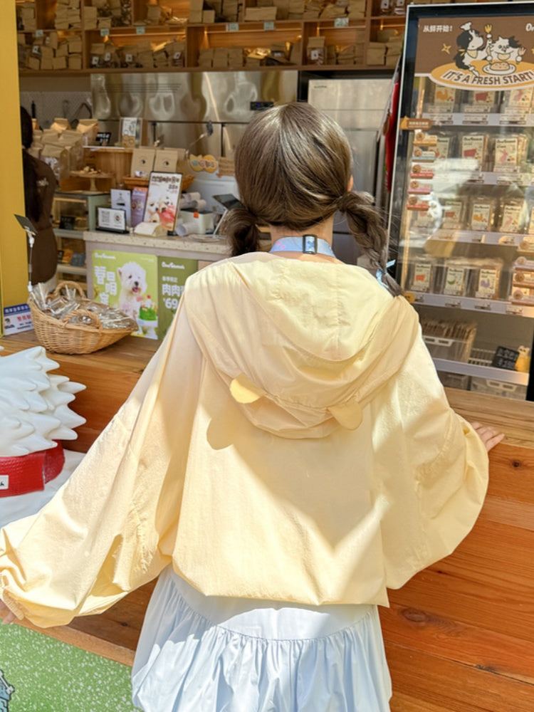 イエローマーモットの耳のデザインフードとドローストリングヘムの日焼け防止ジャケット