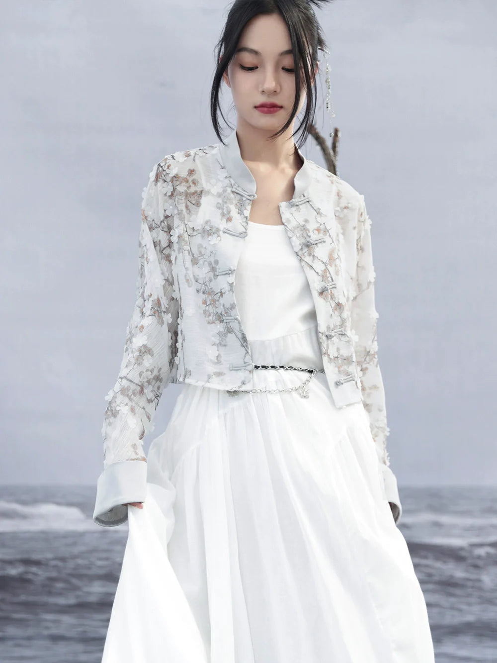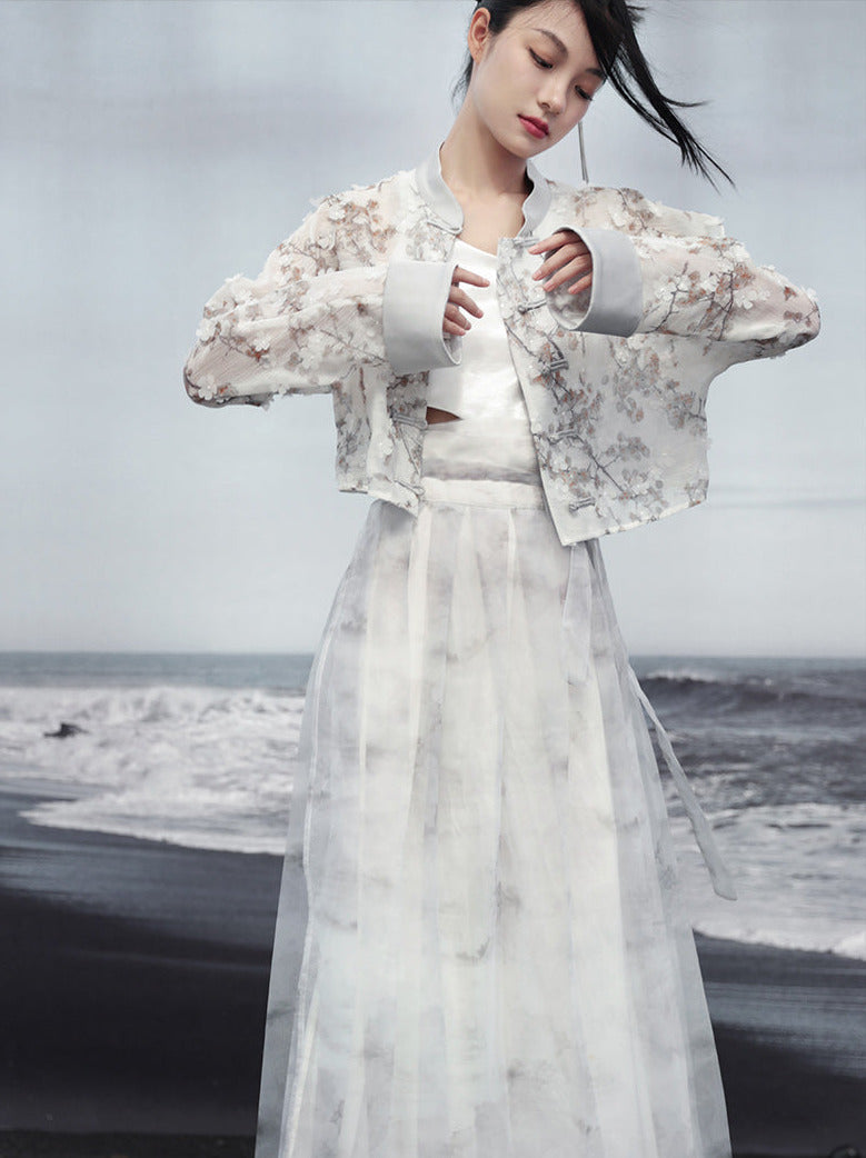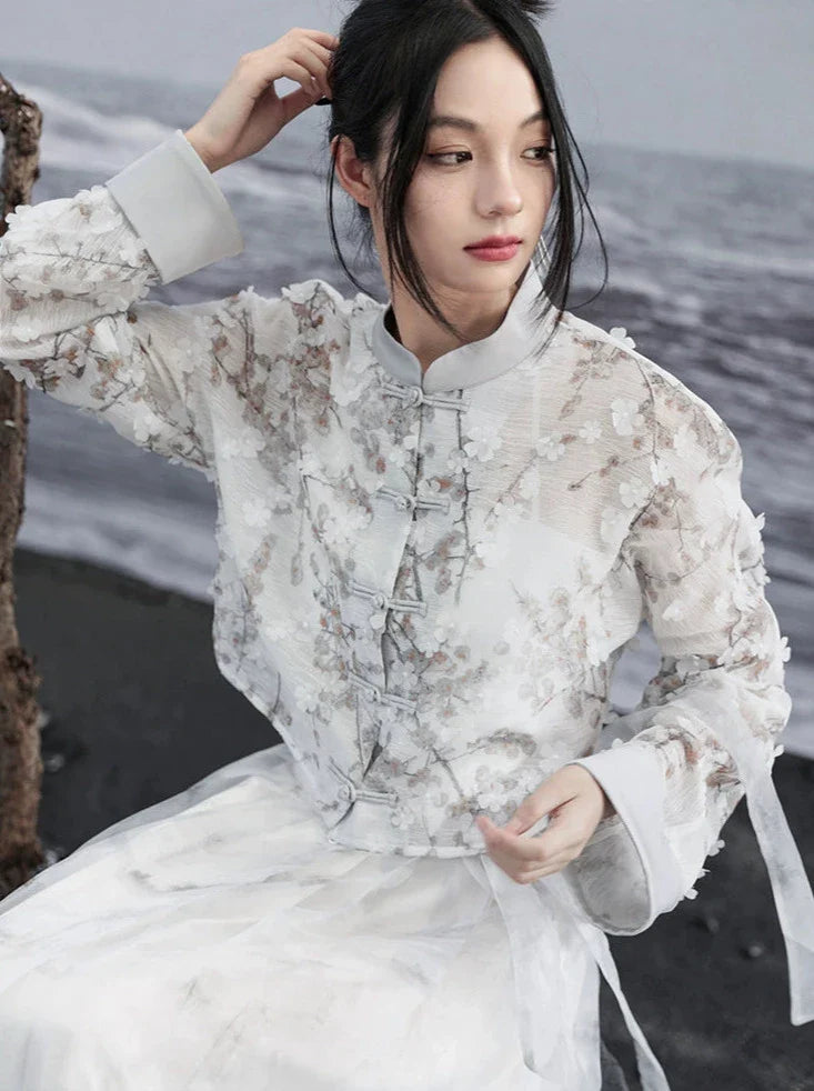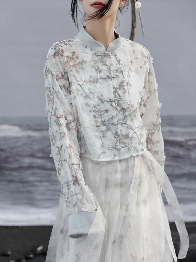 ジャカードプリントジャケット ショート ライト ルーズ チャイナ