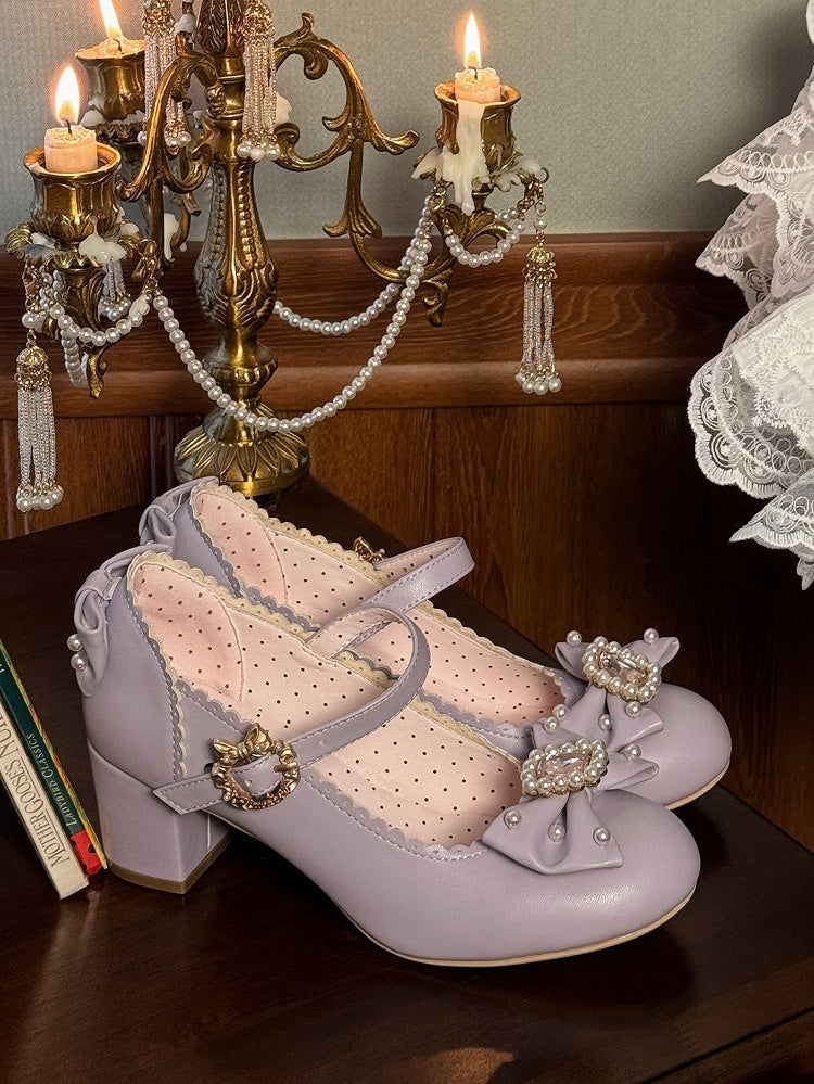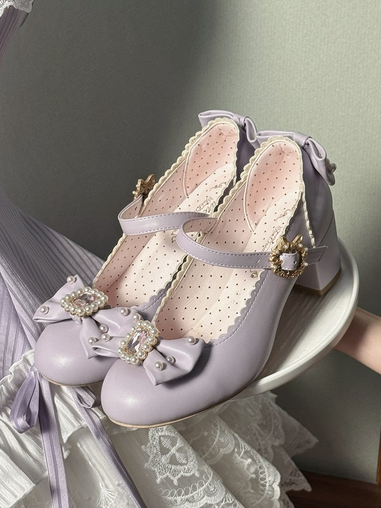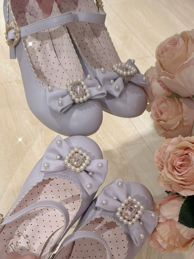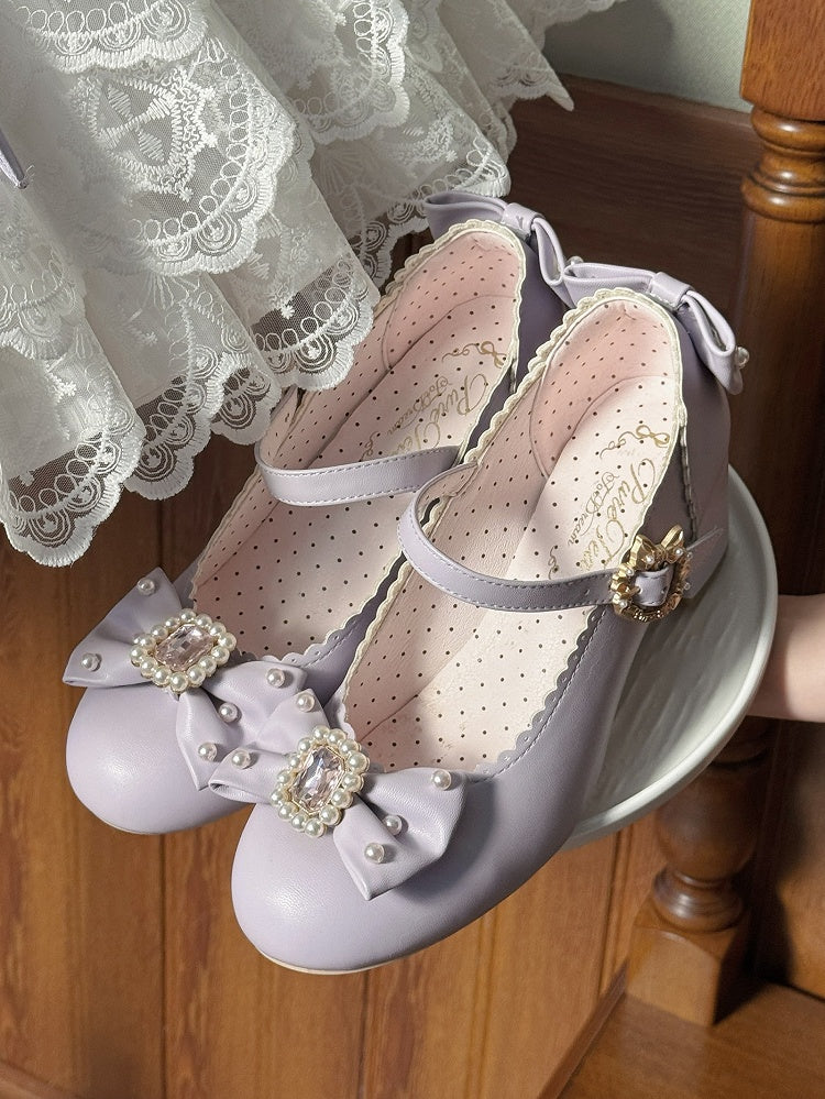 ジェーンズ ボウノット ロリータ ディテール ビーズ装飾 メアリー ラインストーン トゥ ラウンド シューズ パープル