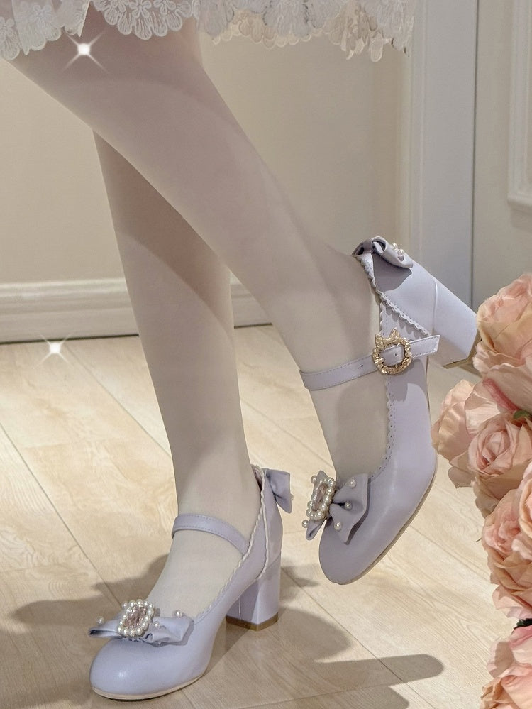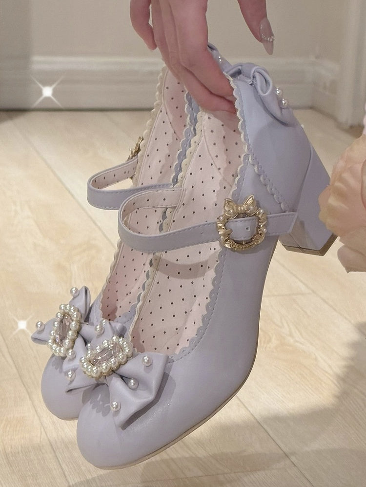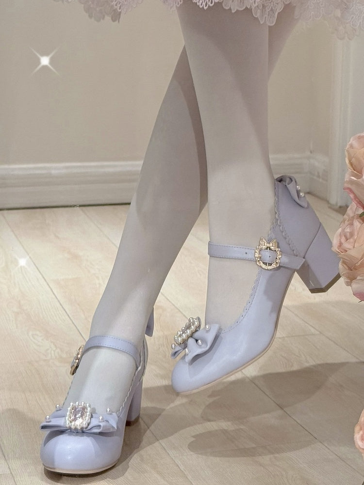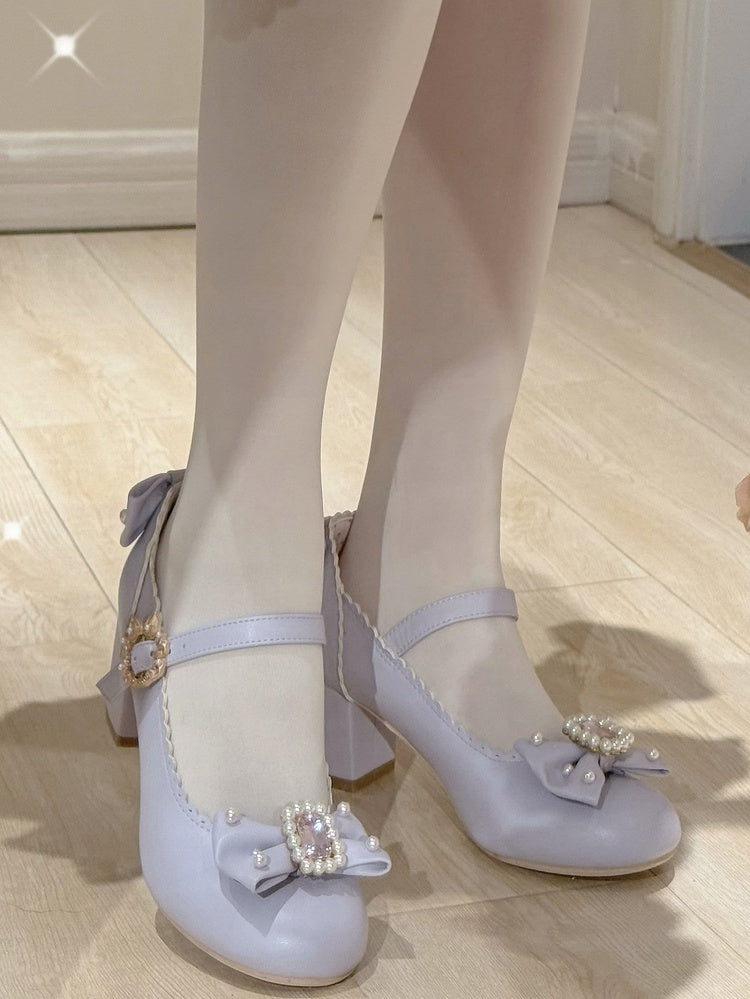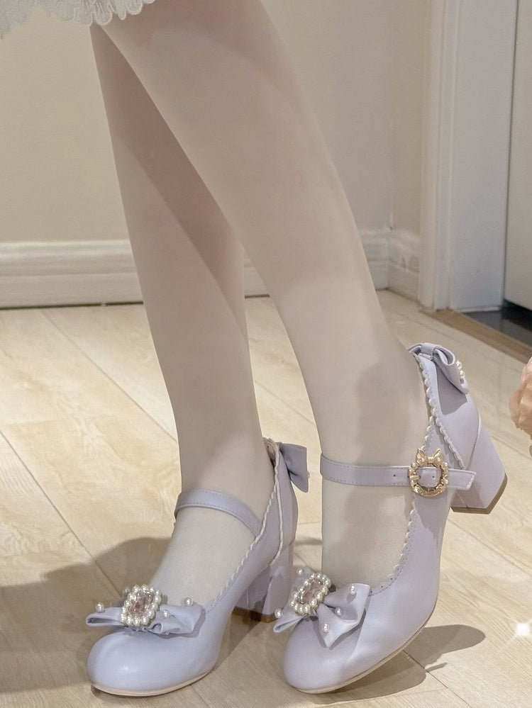 ジェーンズ ボウノット ロリータ ディテール ビーズ装飾 メアリー ラインストーン トゥ ラウンド シューズ パープル