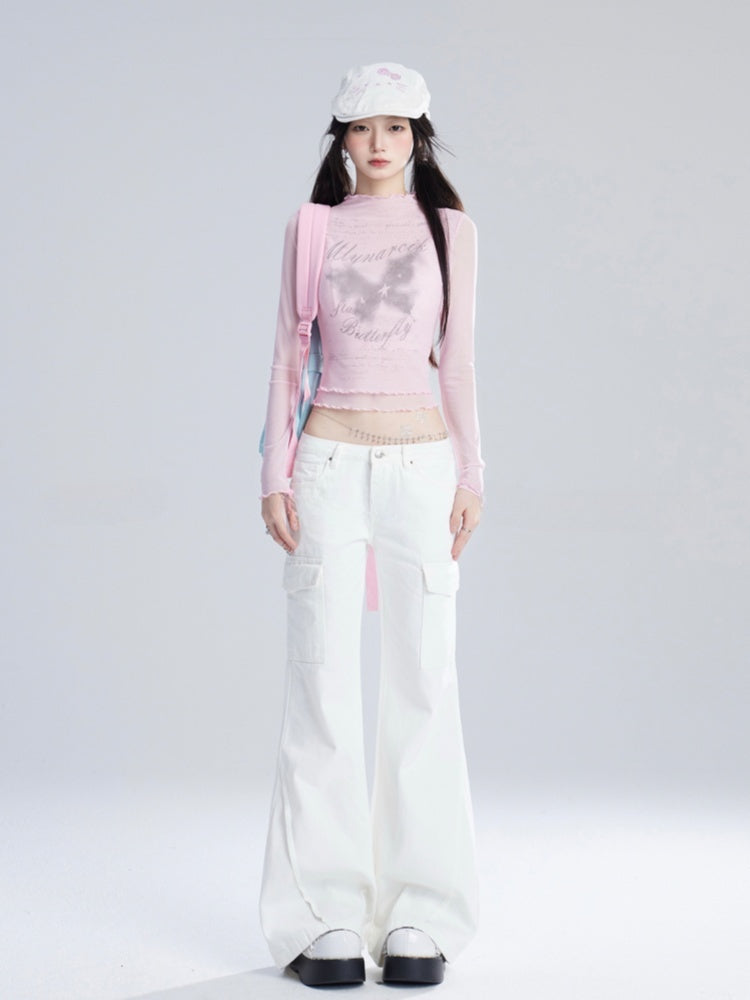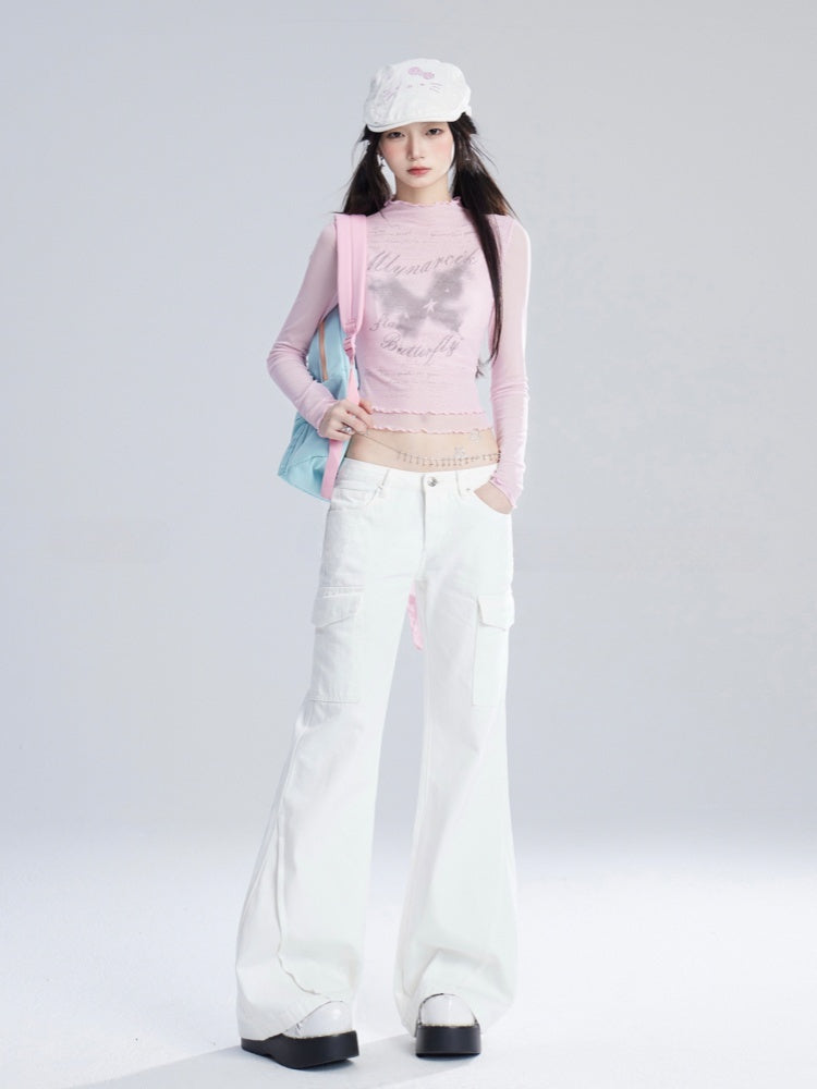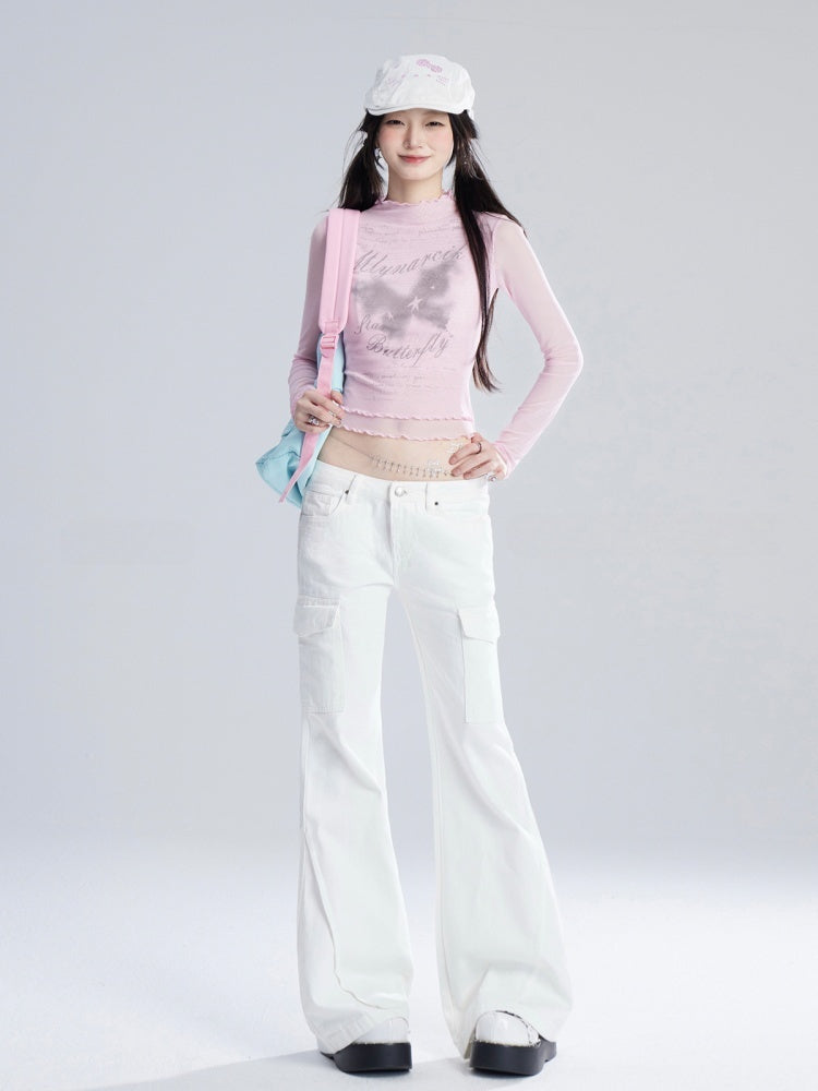 ジーンズ ホワイト ローフレアウエスト ヴィンテージ グラマラス