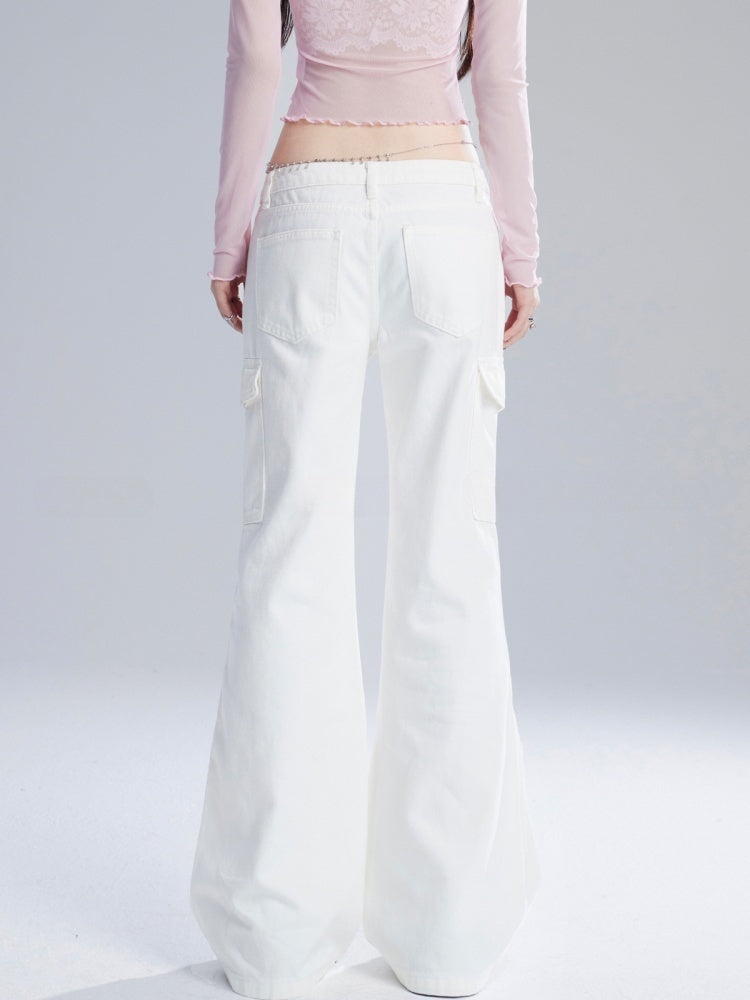ホワイトのローウエストヴィンテージグラマラスフレアジーンズ