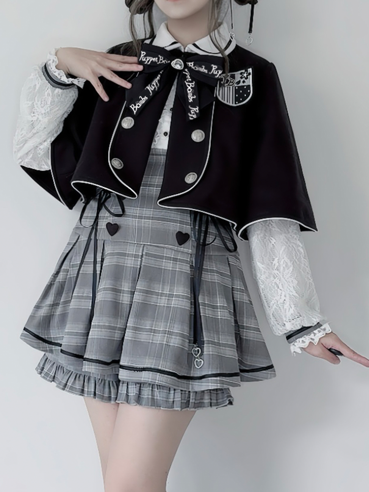 ジライケイのブラック取り外し可能な蝶結びバッジアップリケケープで、ワードローブにキュートなアクセントをプラス。取り外し可能な蝶結びバッジアップリケは様々なスタイルにアレンジでき、個性的なスタイルを演出できます。