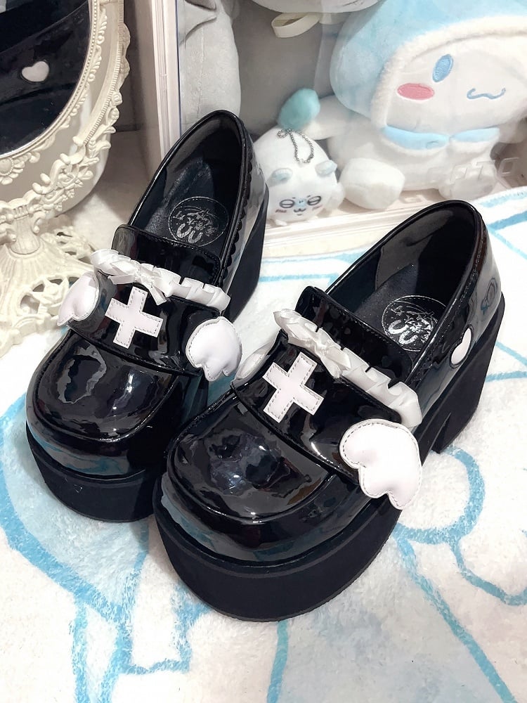 ジライケイ ブラックヤミカワイイクロスちょう結びプラットフォームローファー