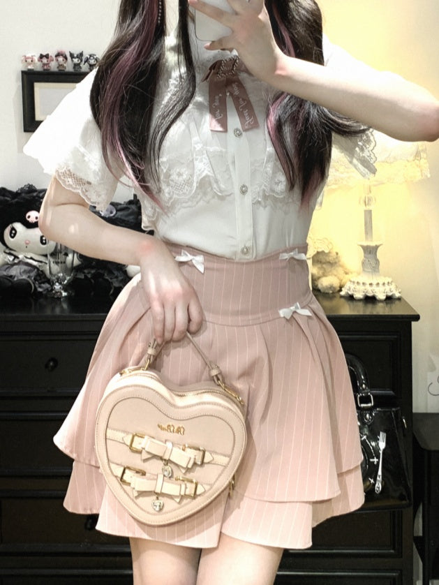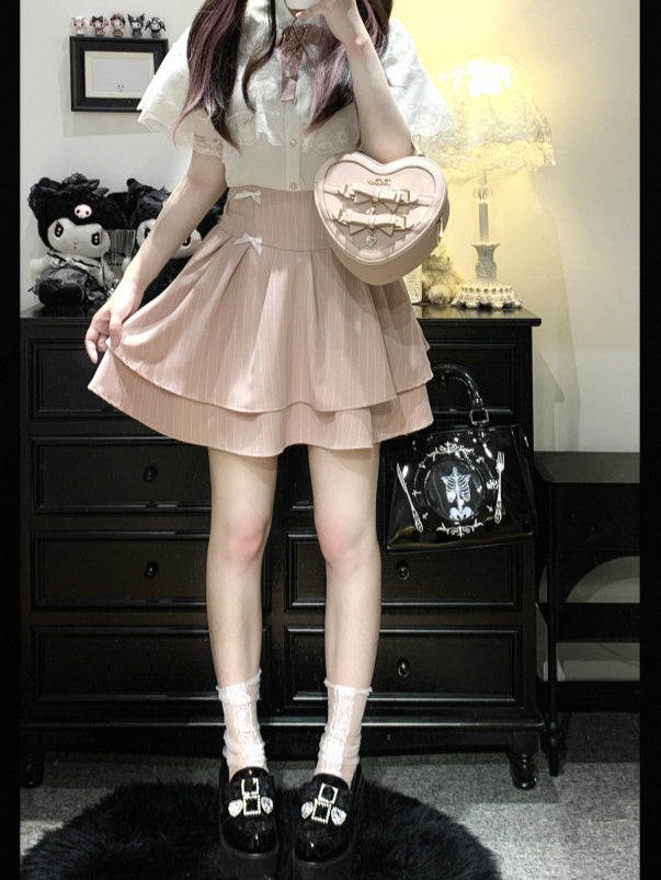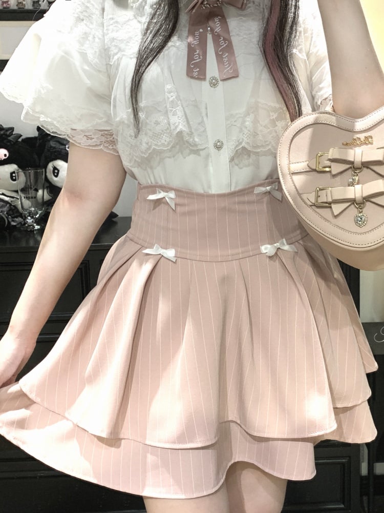 ピンクと白のオールドスクールロリータファッションドレス、蝶結びディテール、ロリータJSKセット