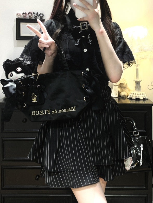 黒と白のオールドスクールロリータファッションドレス蝶結びロリータJSKセット