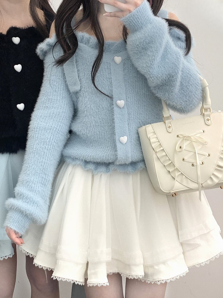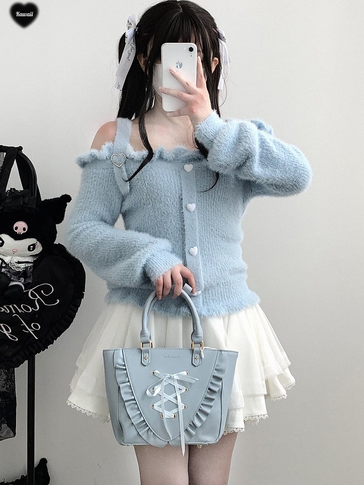 ジライケイ ブルー オフショルダー ネックライン ランドマインスタイル セーター