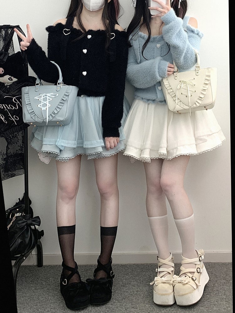 青と白のオールドスクールロリータファッションドレス 蝶結びディテール JSK セット