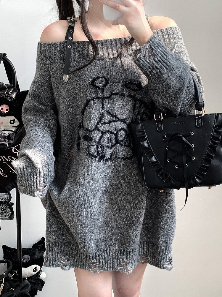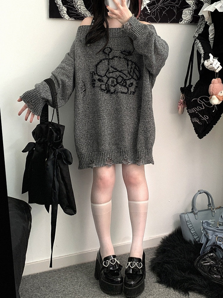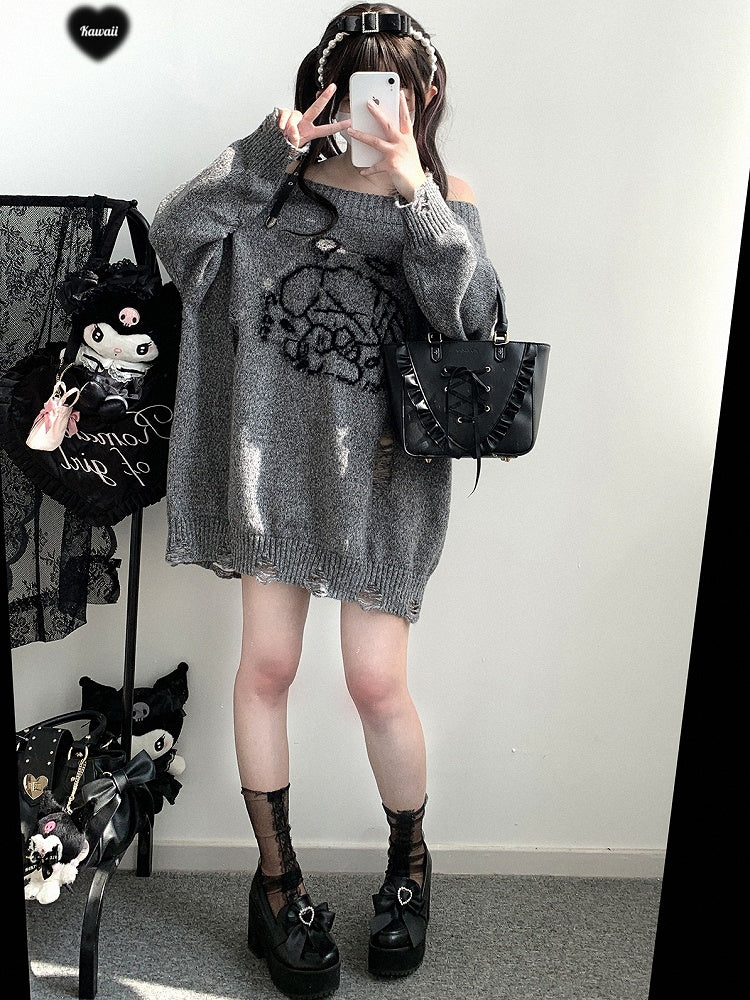 この愛らしいJirai Kei Grey Angel Puppy Graphic Distressed Holes Landmine Loose Sweaterは、可愛らしさとスタイルが完璧に融合したアイテムです。ダメージ加工の穴がエッジの効いたアクセントとなり、ゆったりとしたフィット感が快適さと着回し力を高めます。このユニークでチャーミングなセーターで、子犬への愛情を表現しましょう。