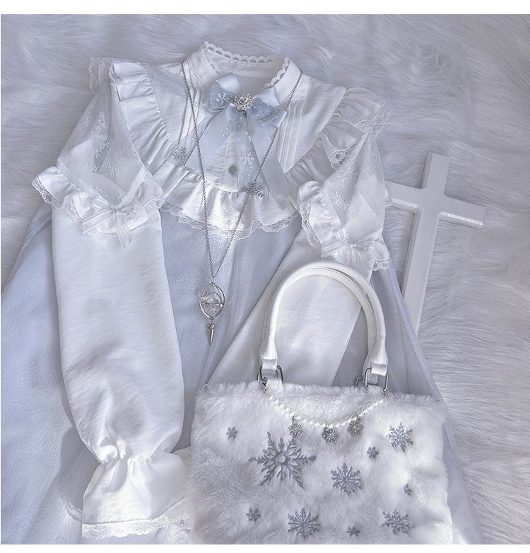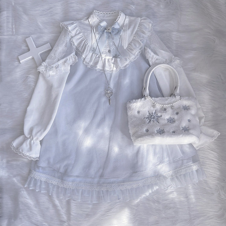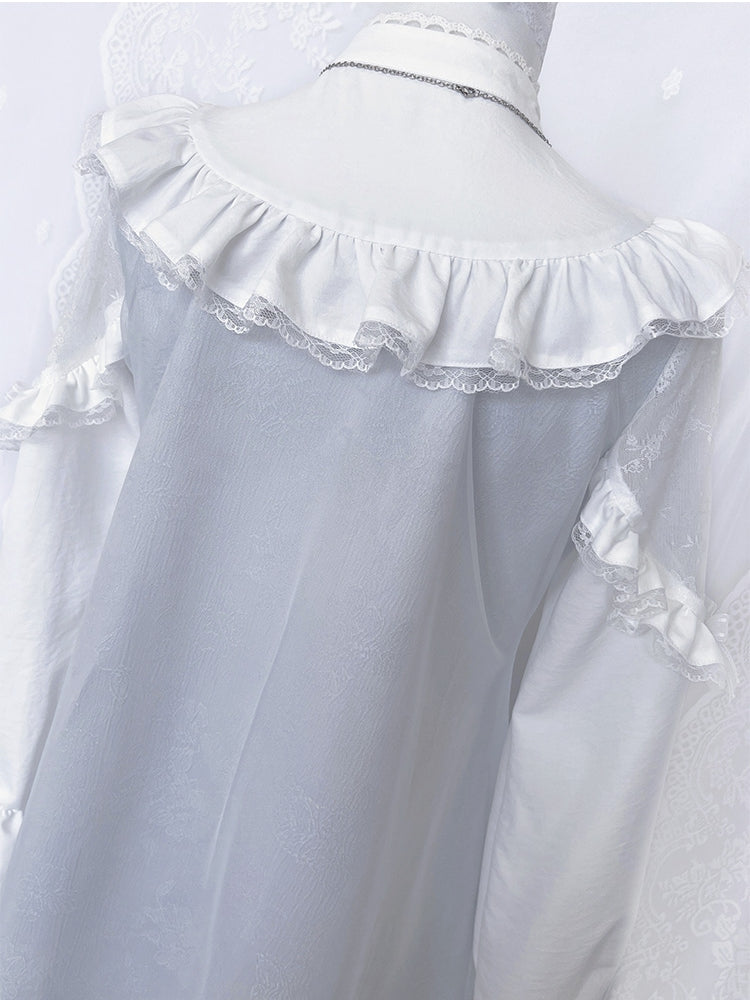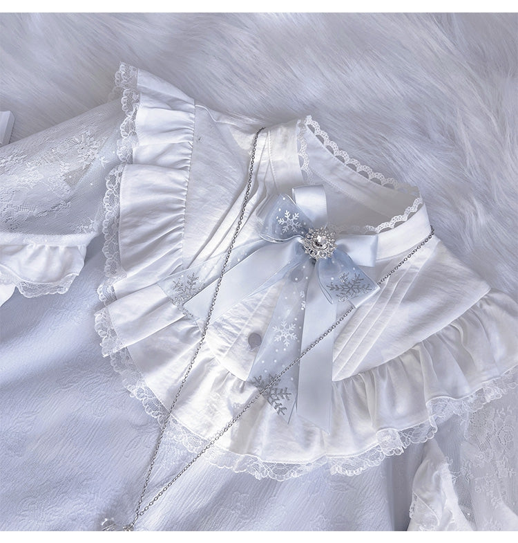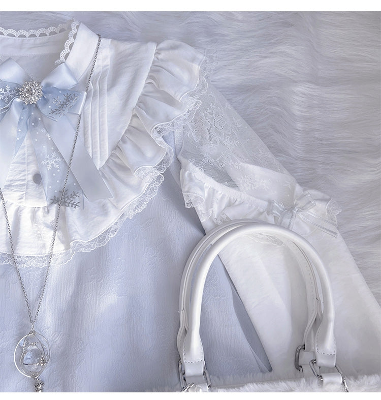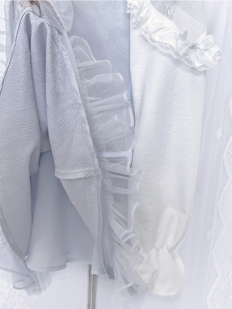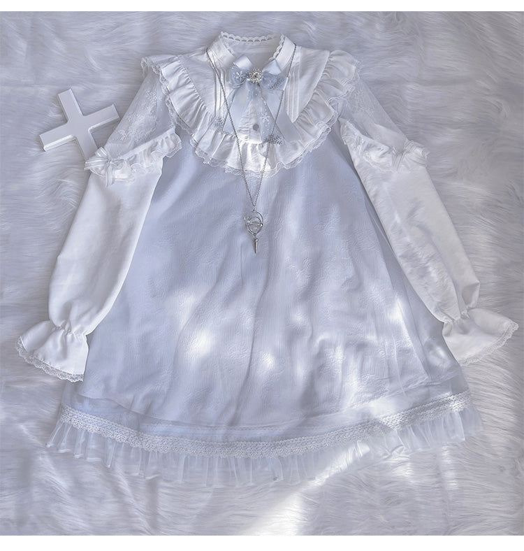 繊細なレースパッチの肩と、ユニークな地雷風デザインが特徴の、愛らしいライトブルーのドレス。レーストリムの長袖は、どんなシーンにもぴったり。Jirai Kei Dressで、ワードローブにキュートなアクセントをプラスして。