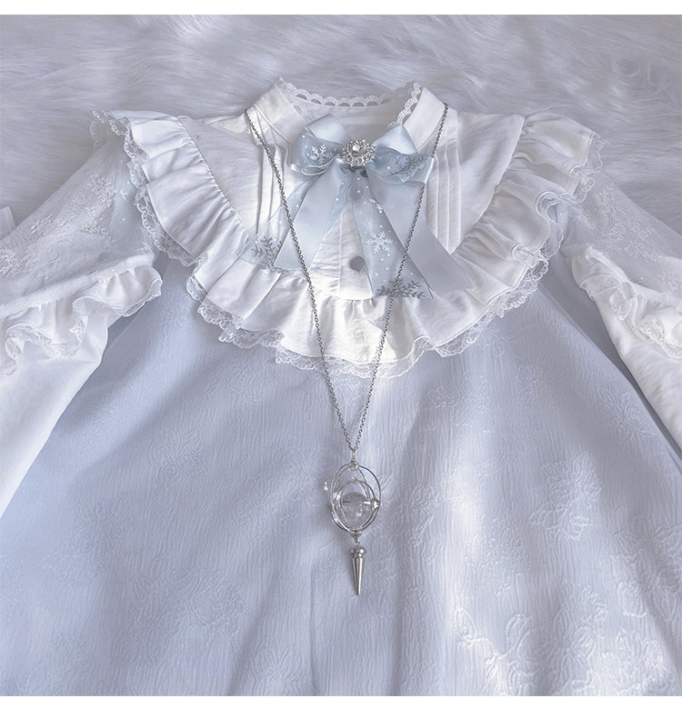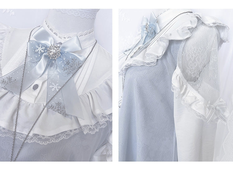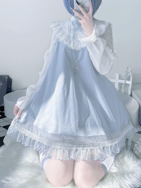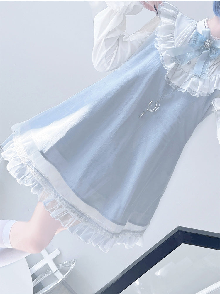 青と白のオールドスクールロリータファッションドレス 蝶結びディテール JSK セット
