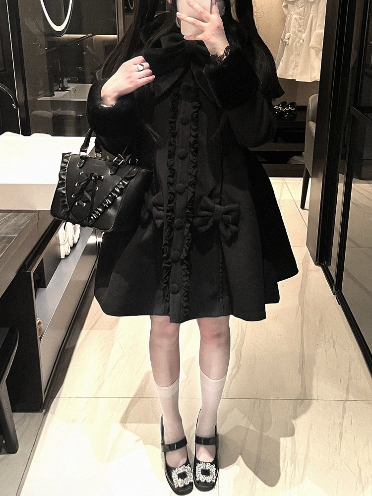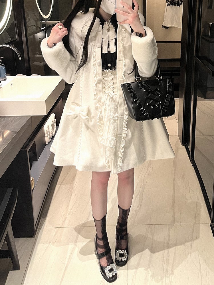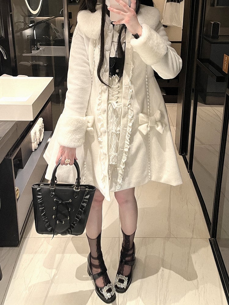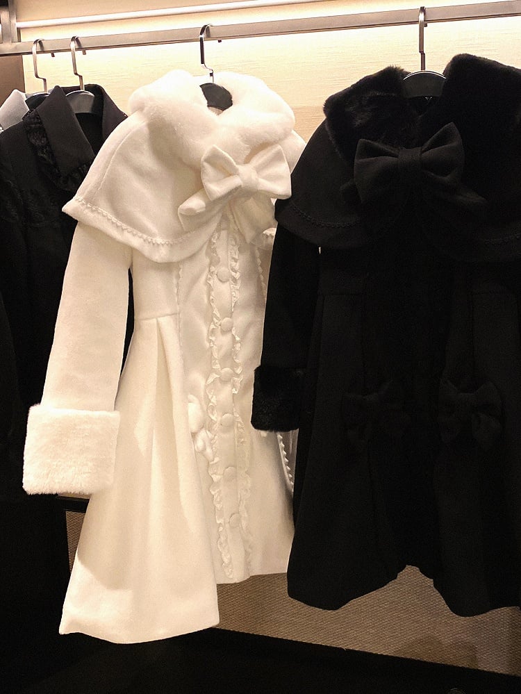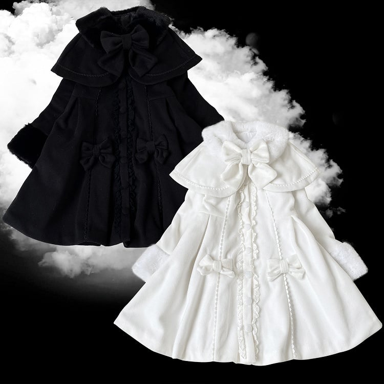 取り外し可能なケープとキュートな蝶結びデザインが特徴の、地雷風コート。ファッション性と実用性を兼ね備えています。ホワイトでもブラックでも、幅広いコーディネートをお楽しみいただけます。この愛らしい地雷風コートで、今シーズンは暖かくスタイリッシュに過ごしましょう。