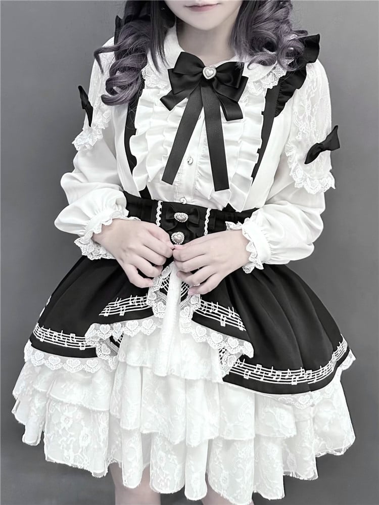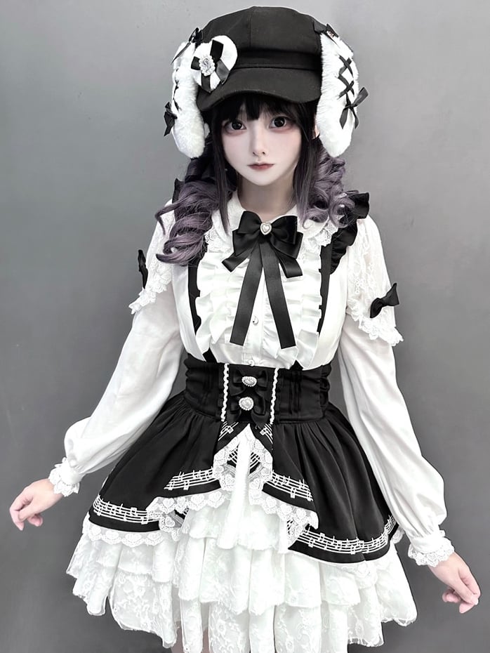 黒と白のオールドスクールロリータファッションドレス蝶結びロリータJSKセット