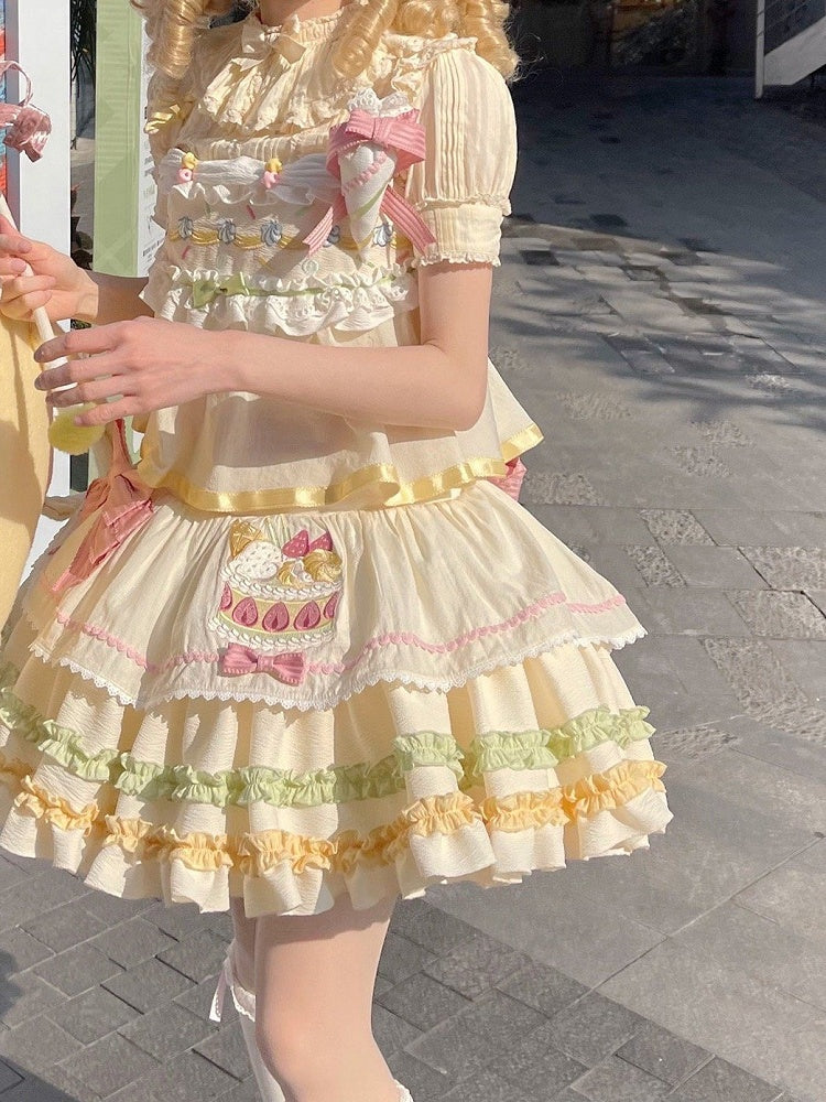 ジャンパーケーキ ストロベリースカート パステルカラー サマー クリーム 刺繍 スイート ロリータ