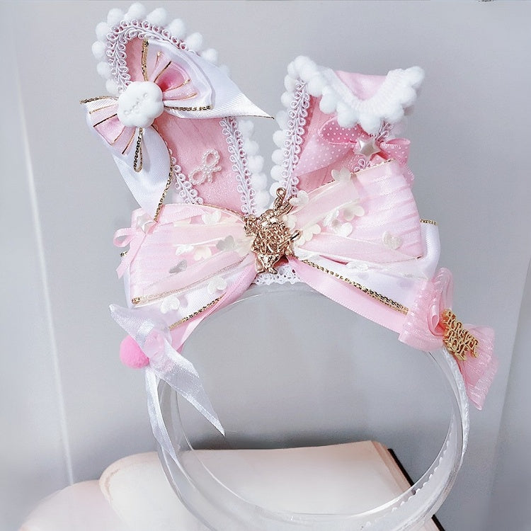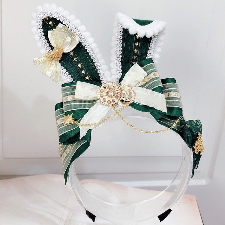グリーン/ピンクの蝶結びディテールのバニーイヤーKC