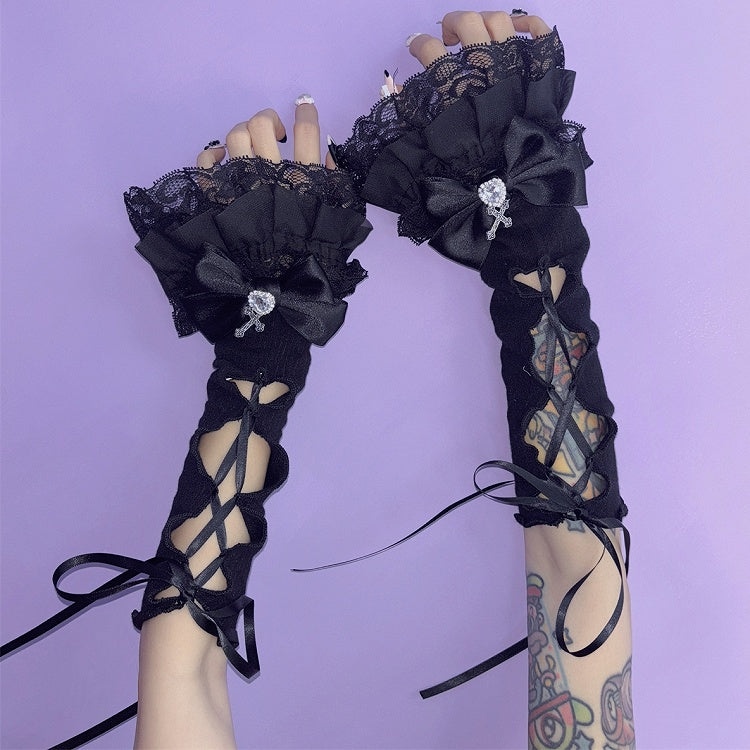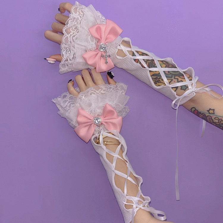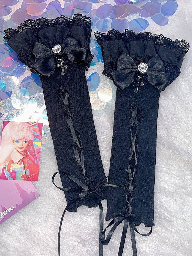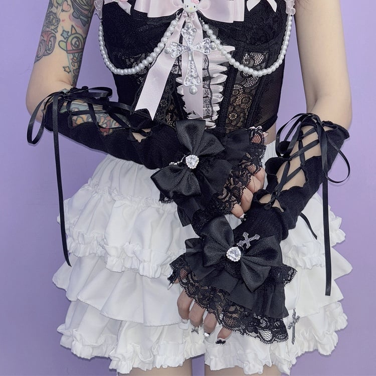 Kei Y2K ディテール クロス ブラック/ホワイト レースアップ チャーム ジライ スリーブ