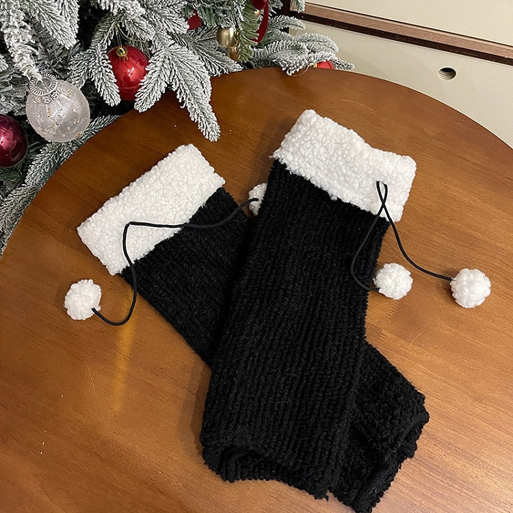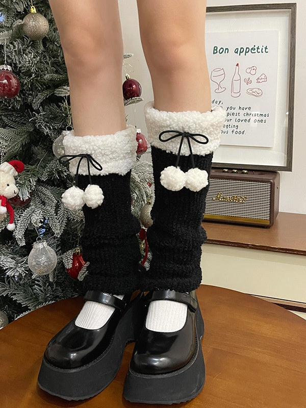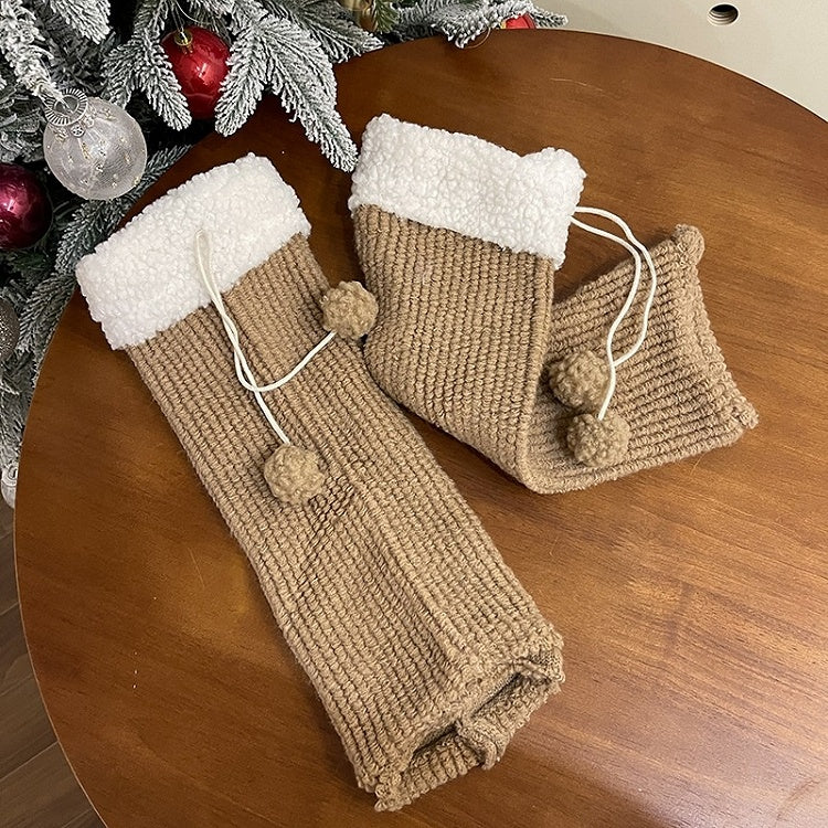 カーキ&ブラウンのポンポン付きスウィートレッグウォーマー