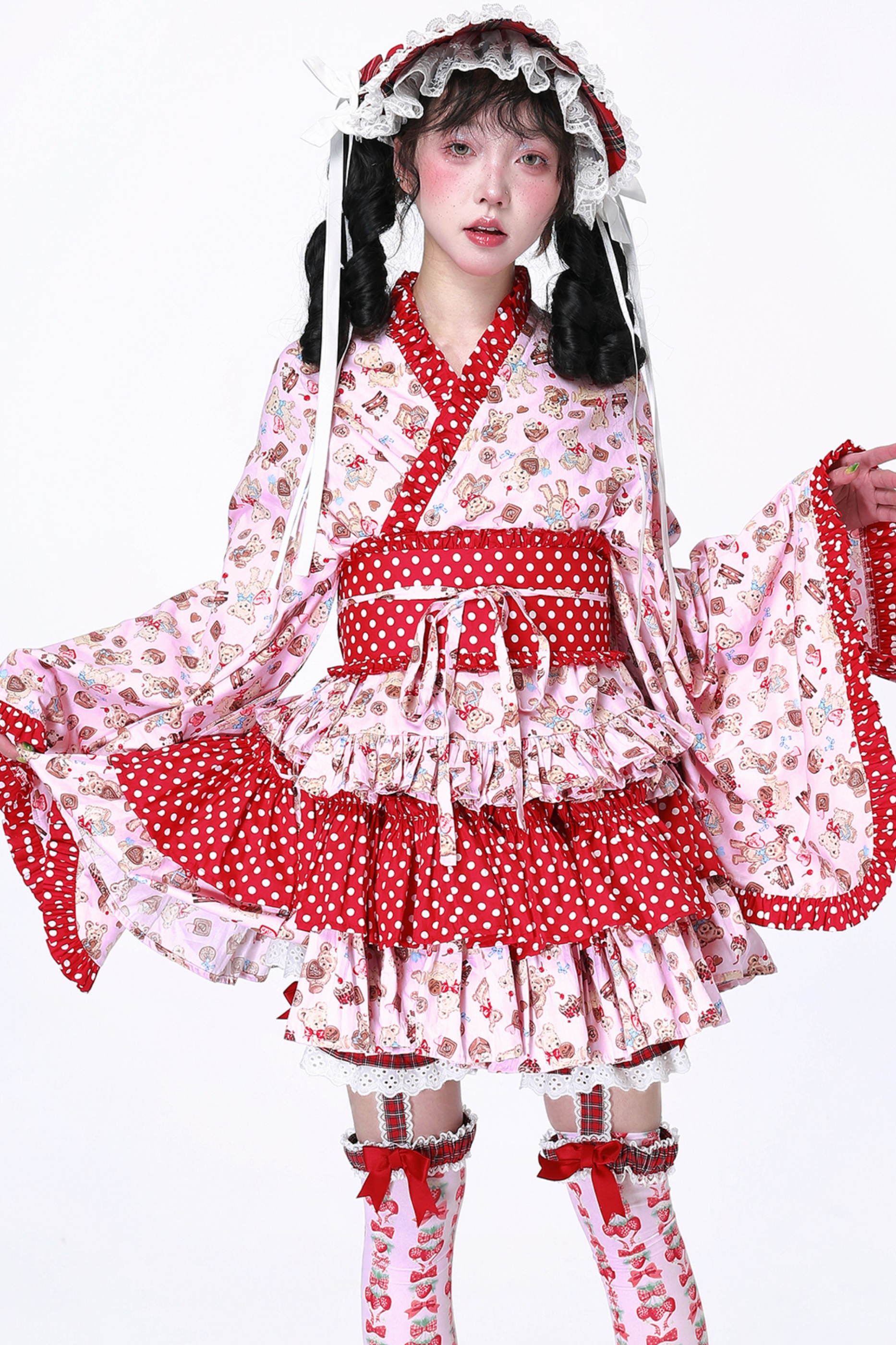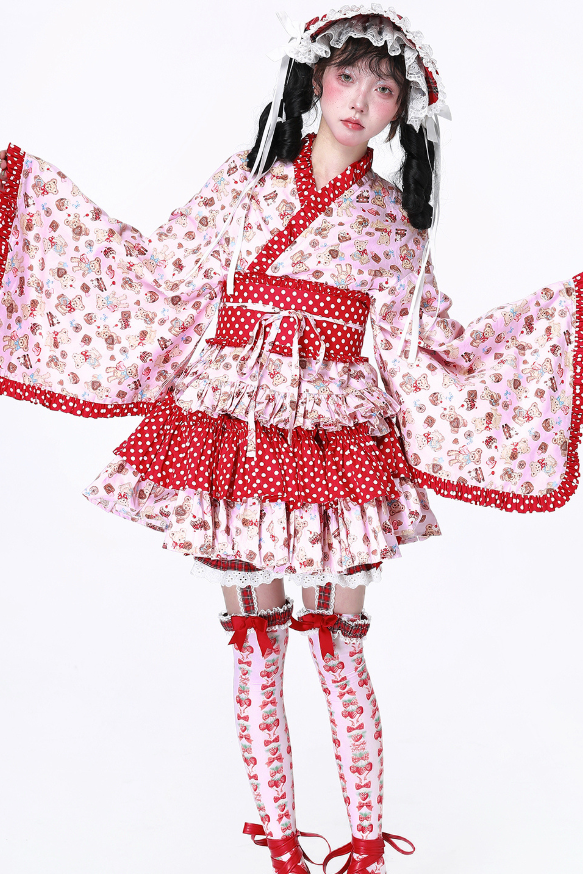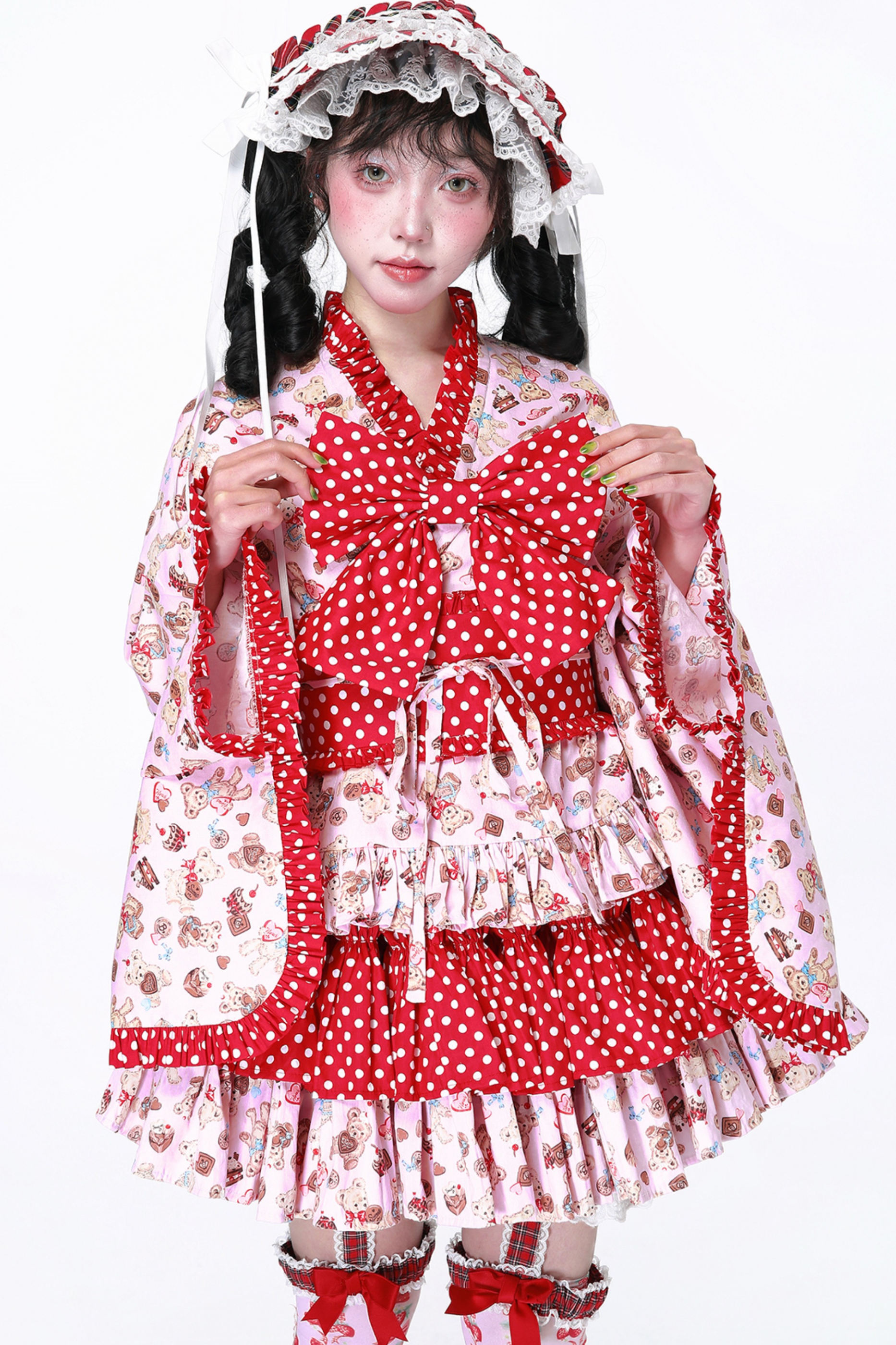 ホワイトとピンクのロリータボンネットチョーカー