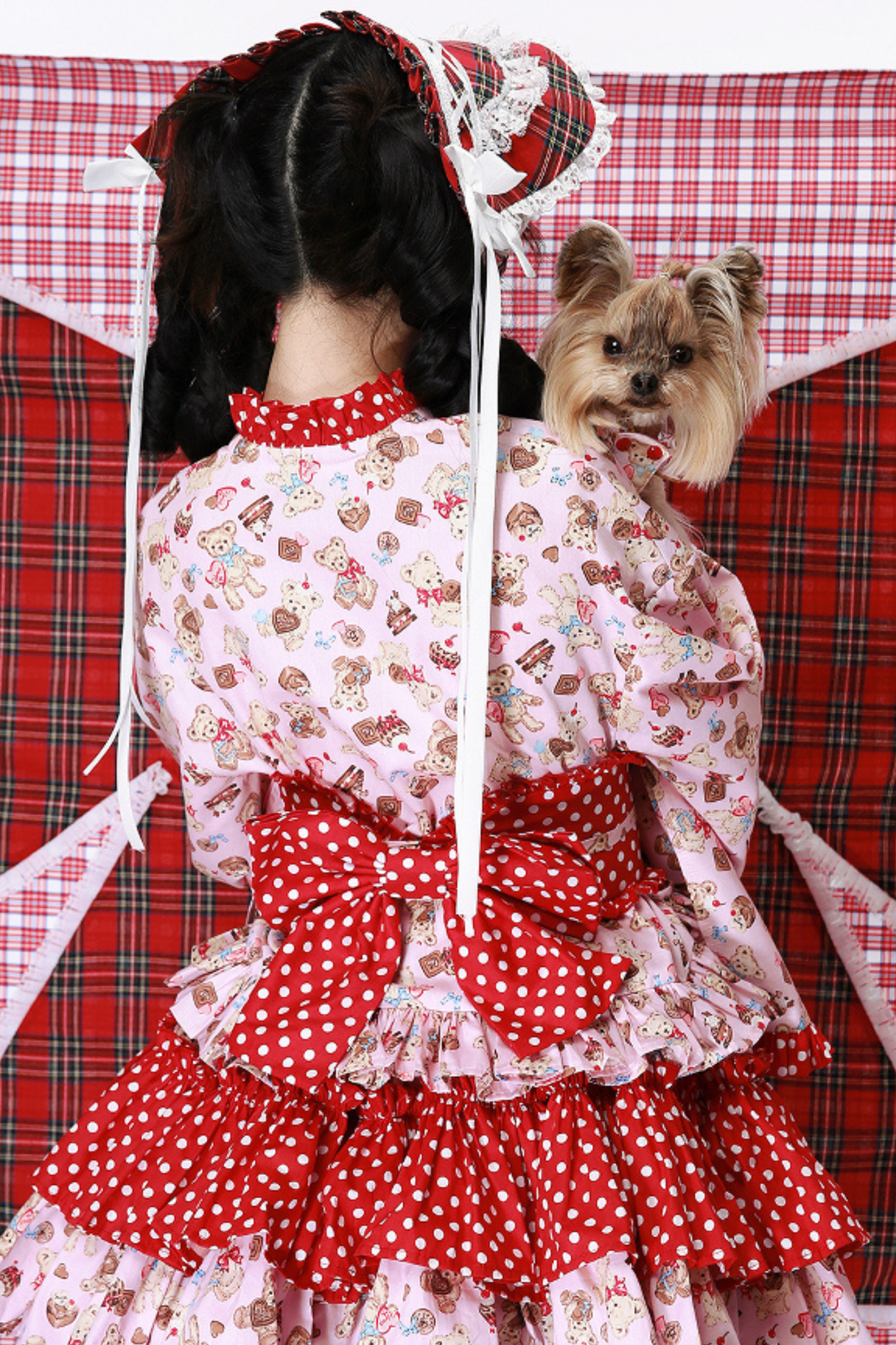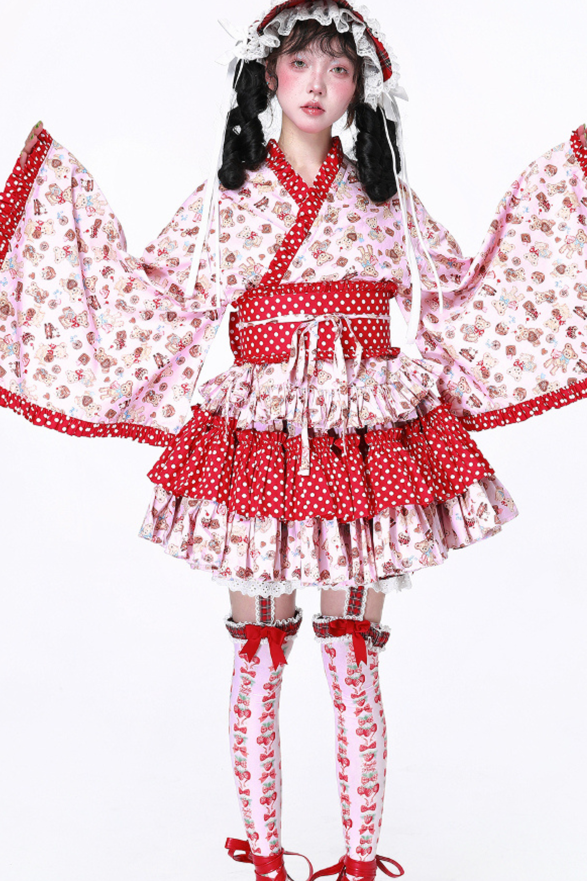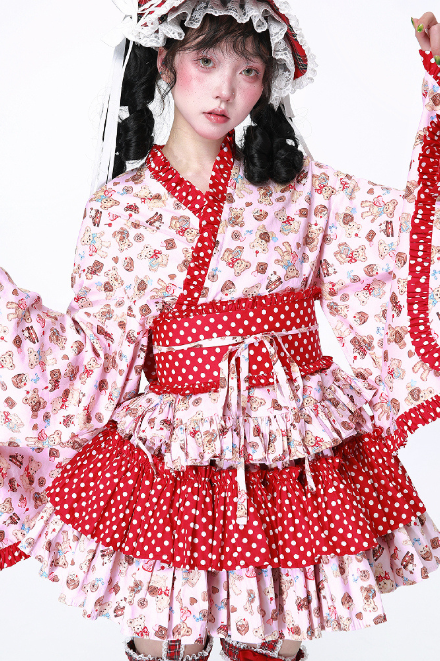 ホワイトとピンクのロリータボンネットチョーカー
