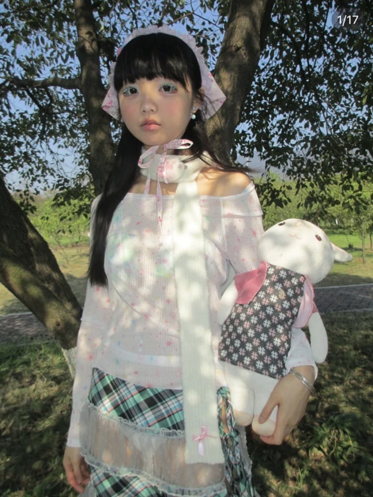 ホワイトとピンクのロリータボンネットチョーカー