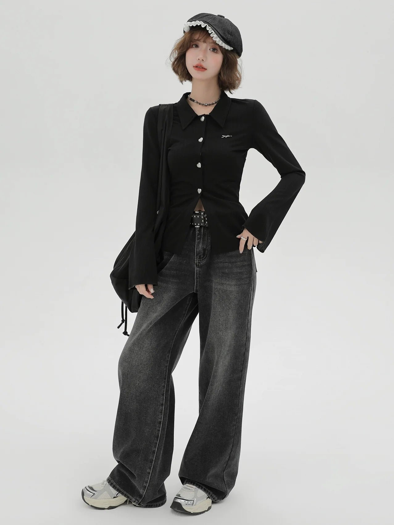ニットベルブラックスリムポロカラーカーディガンスリーブレトロは、スタイリッシュで愛らしい一着です。スリムフィットがスタイルを美しく見せ、レトロなデザインがノスタルジックな雰囲気を添えます。クラシックなポロカラーとベルスリーブが特徴のこのカーディガンは、普段着にも夜のお出かけにもぴったりです。