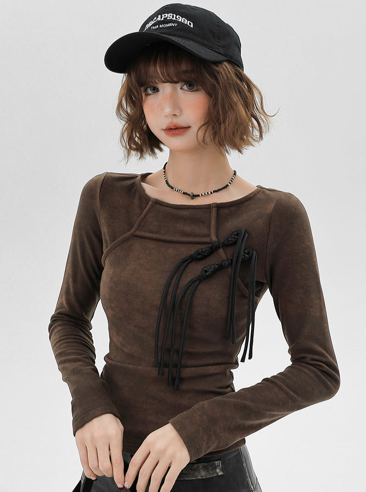 タッセル付きの愛らしいニットスリムチャイナレトロトップスは、ワードローブにキュートなアクセントを添えます。柔らかなニット素材とスリムフィットが快適さとスタイリッシュさを両立し、タッセルのディテールが遊び心のあるアクセントを添えます。レトロなスタイルにぴったりです。
