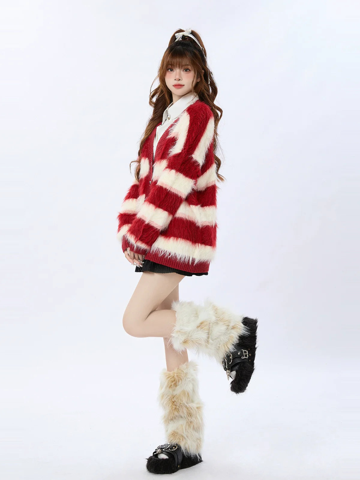 レトロレッドの可愛らしいニットストライプカーディガンは、ワードローブに欠かせないアイテムです。上質な素材を使用し、時代を超えたレトロなデザインとクラシックなストライプ柄が特徴です。このマストハブアイテムで、一日中スタイリッシュで快適な着心地をお楽しみください。