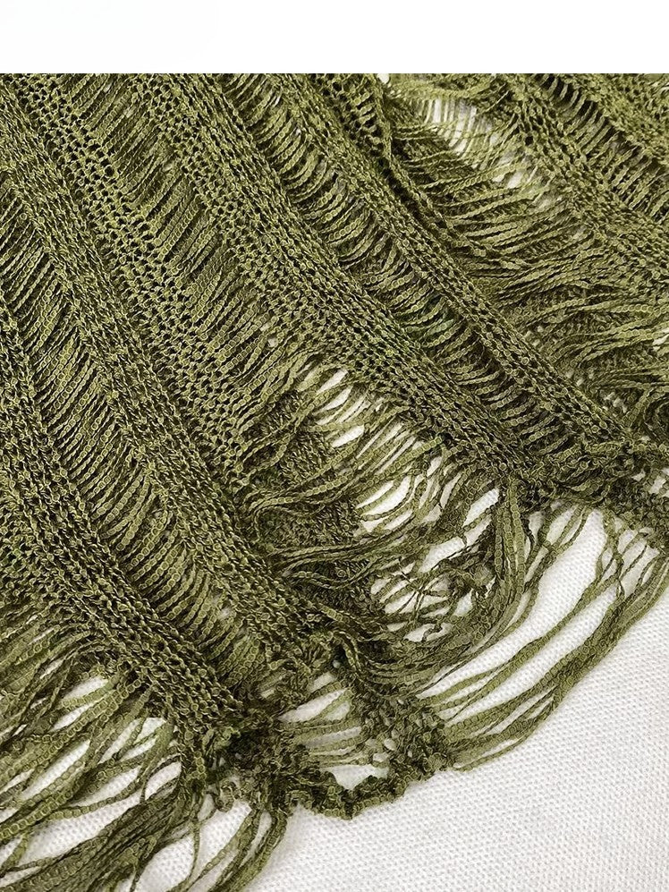 グリーンのほろ苦い華やかな蝶のアップリケ日焼け防止ニット長袖トップス