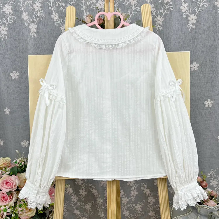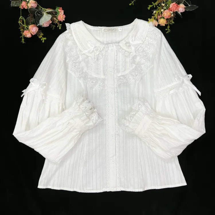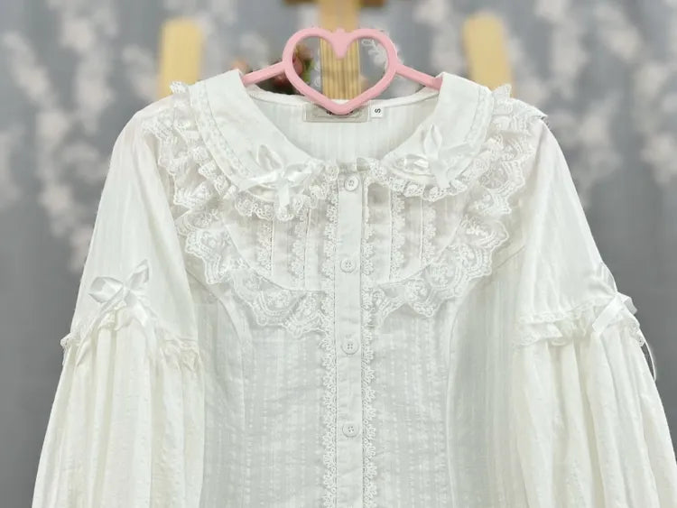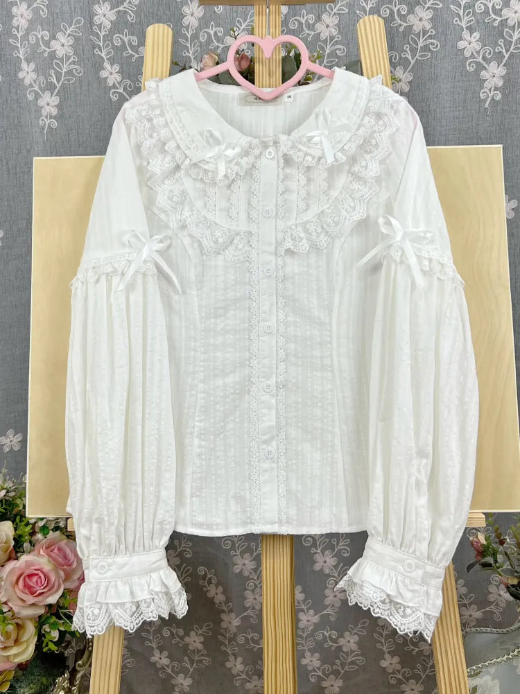 クリアランスサイズ L バスト98cm ホワイト ピーターパンカラー コットン 長袖ブラウス