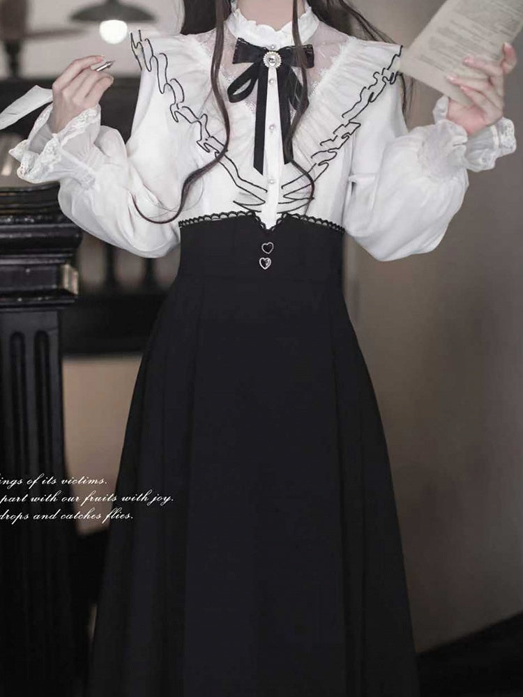 黒と白のオールドスクールロリータファッションドレス蝶結びロリータJSKセット