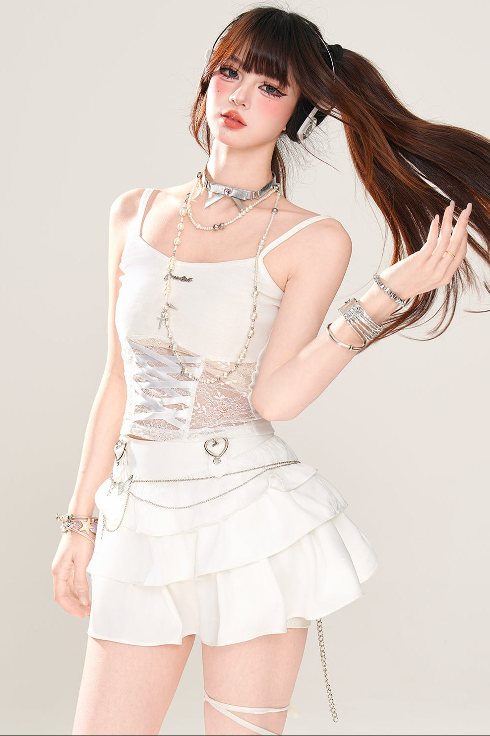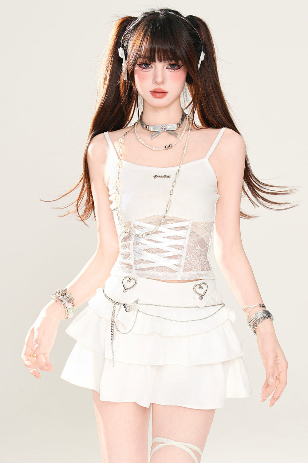 ホワイトとピンクのロリータボンネットチョーカー