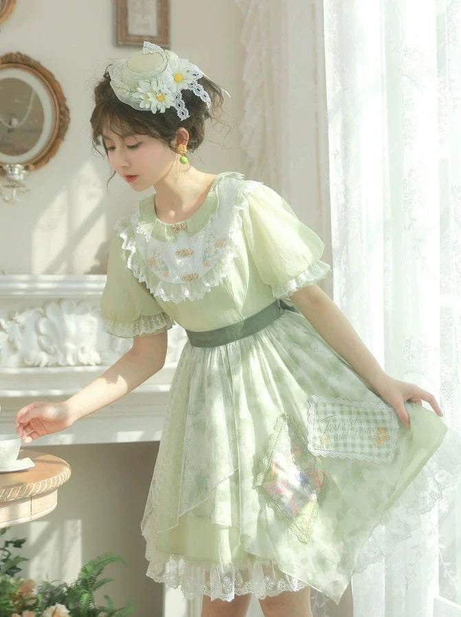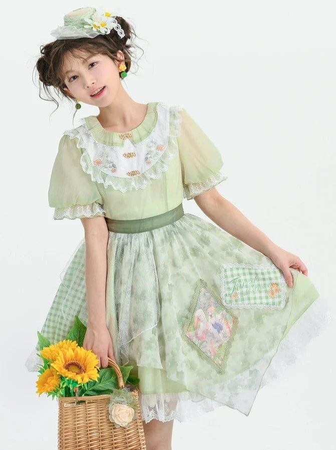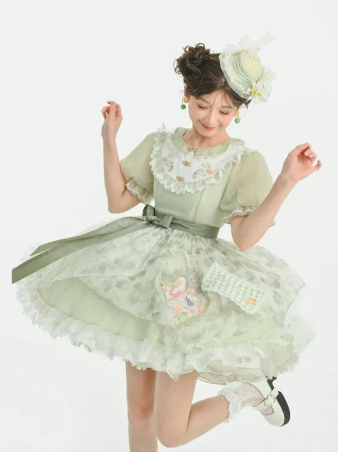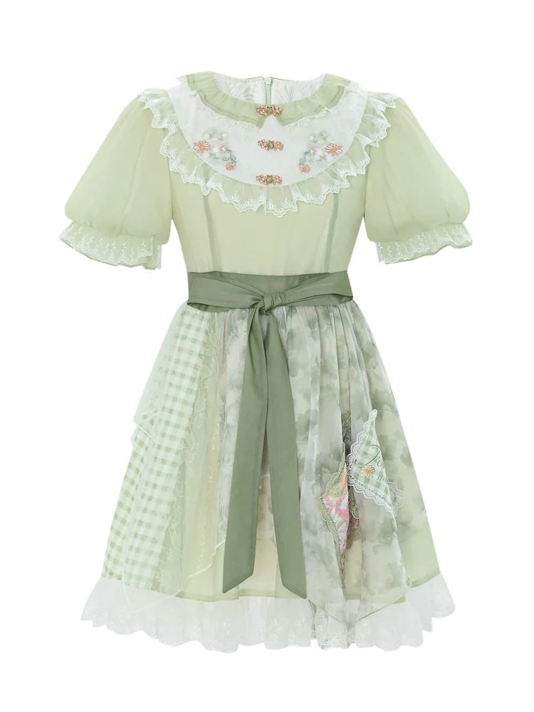 この愛らしいレースフローラルドレスドールは、繊細なステッチと爽やかなミントカラーが特徴です。どんな服装にも可愛らしさをプラスしてくれます。