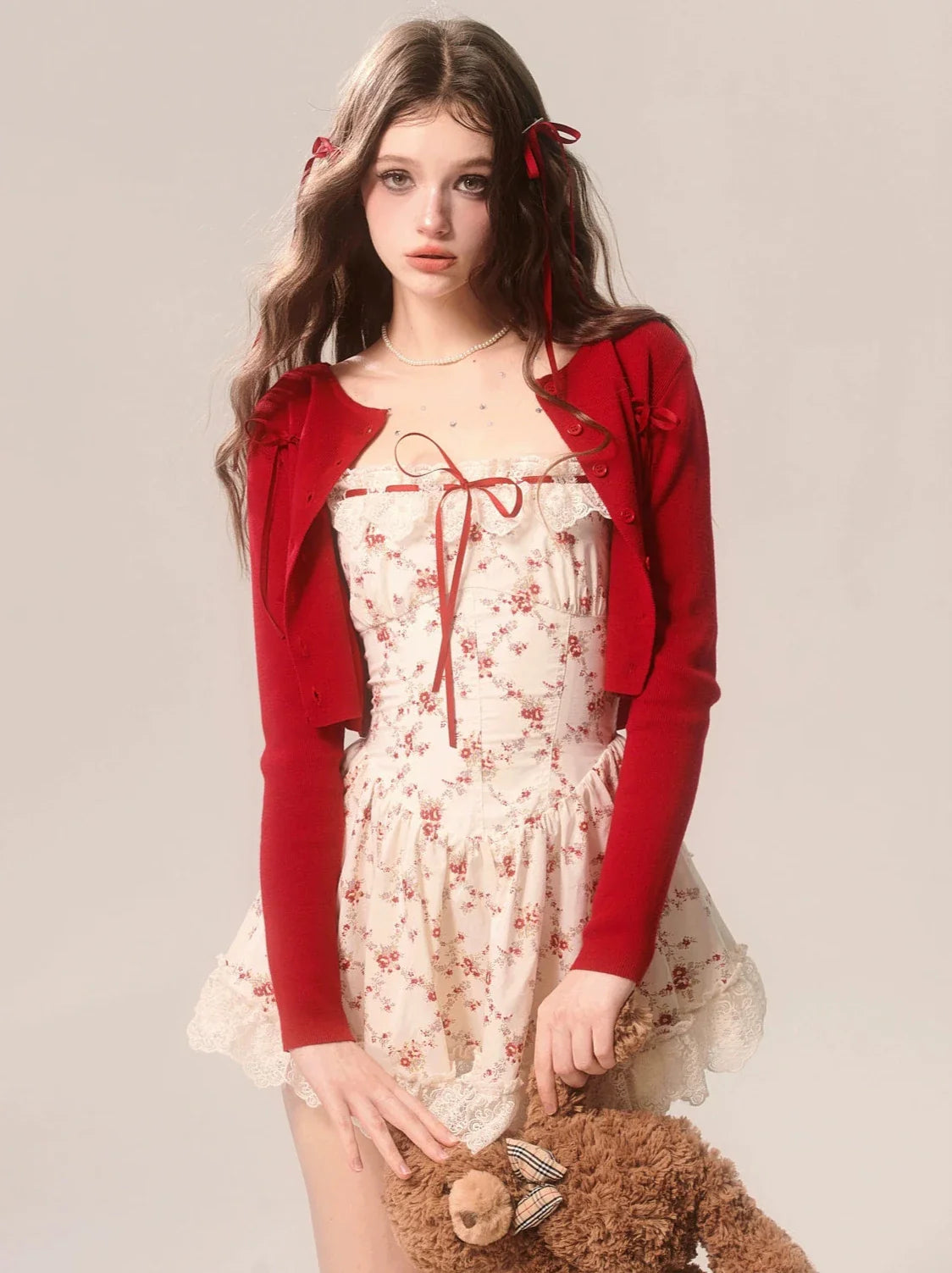ピンクと白のオールドスクールロリータファッションドレス、蝶結びディテール、ロリータJSKセット