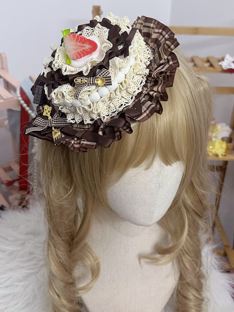 2 Size Options Sweet Lolita Coffee & Beige Strawberry Cake Lace Mini Hat