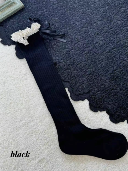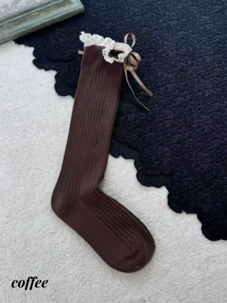 レーストリムの蝶結びカーフソックス
