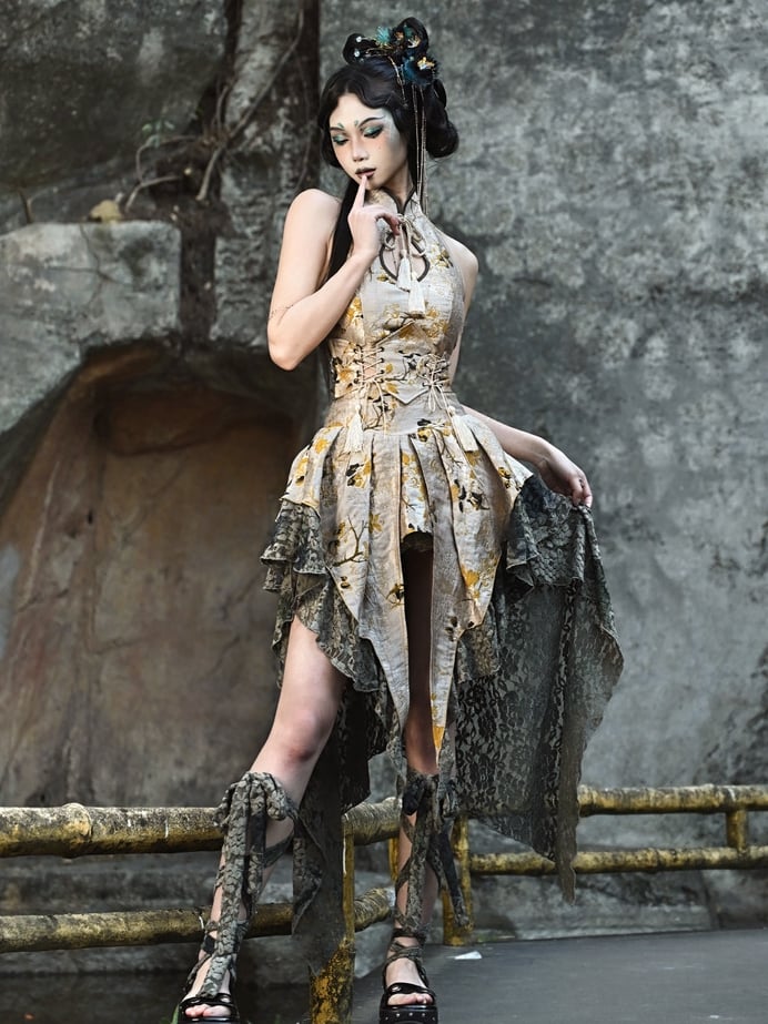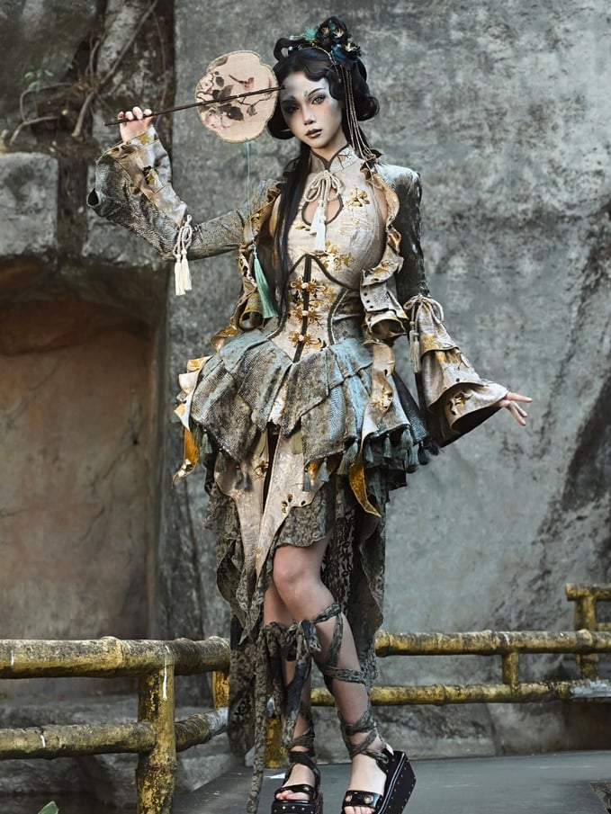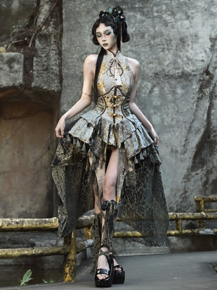 黒と白のオールドスクールロリータファッションドレス蝶結びロリータJSKセット
