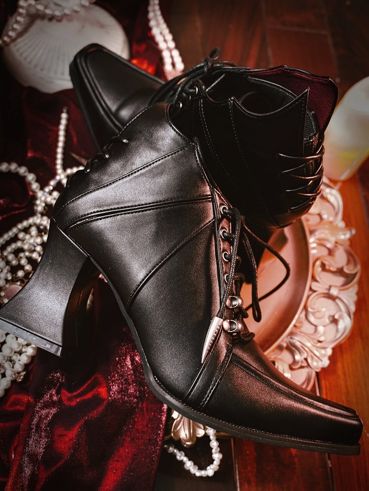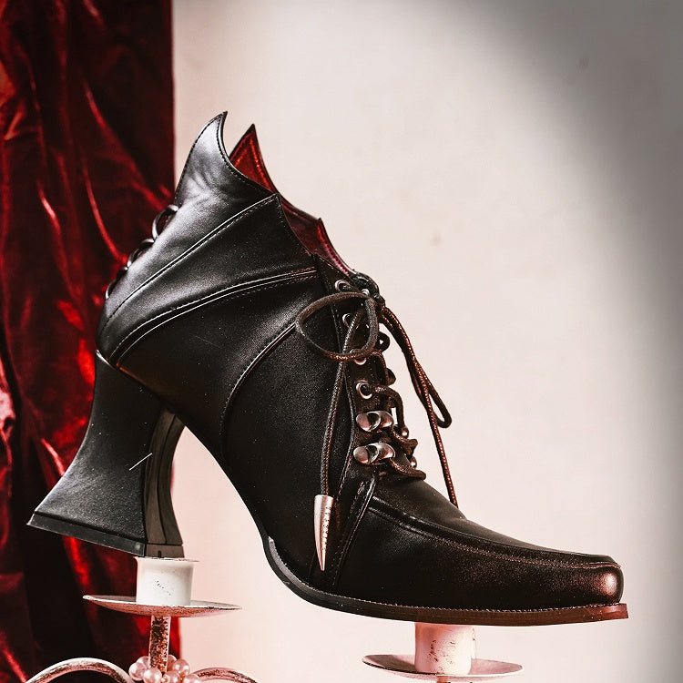 レースアップブーツ ゴシックタイフロント ワイングラス型 ブラックヒール